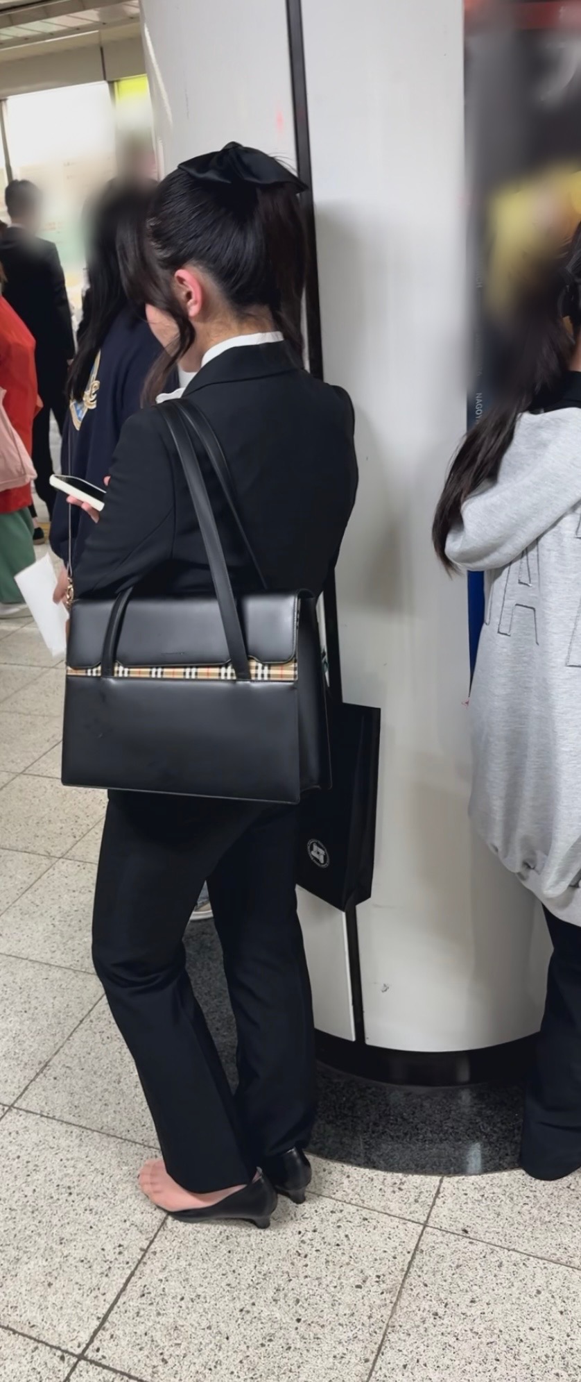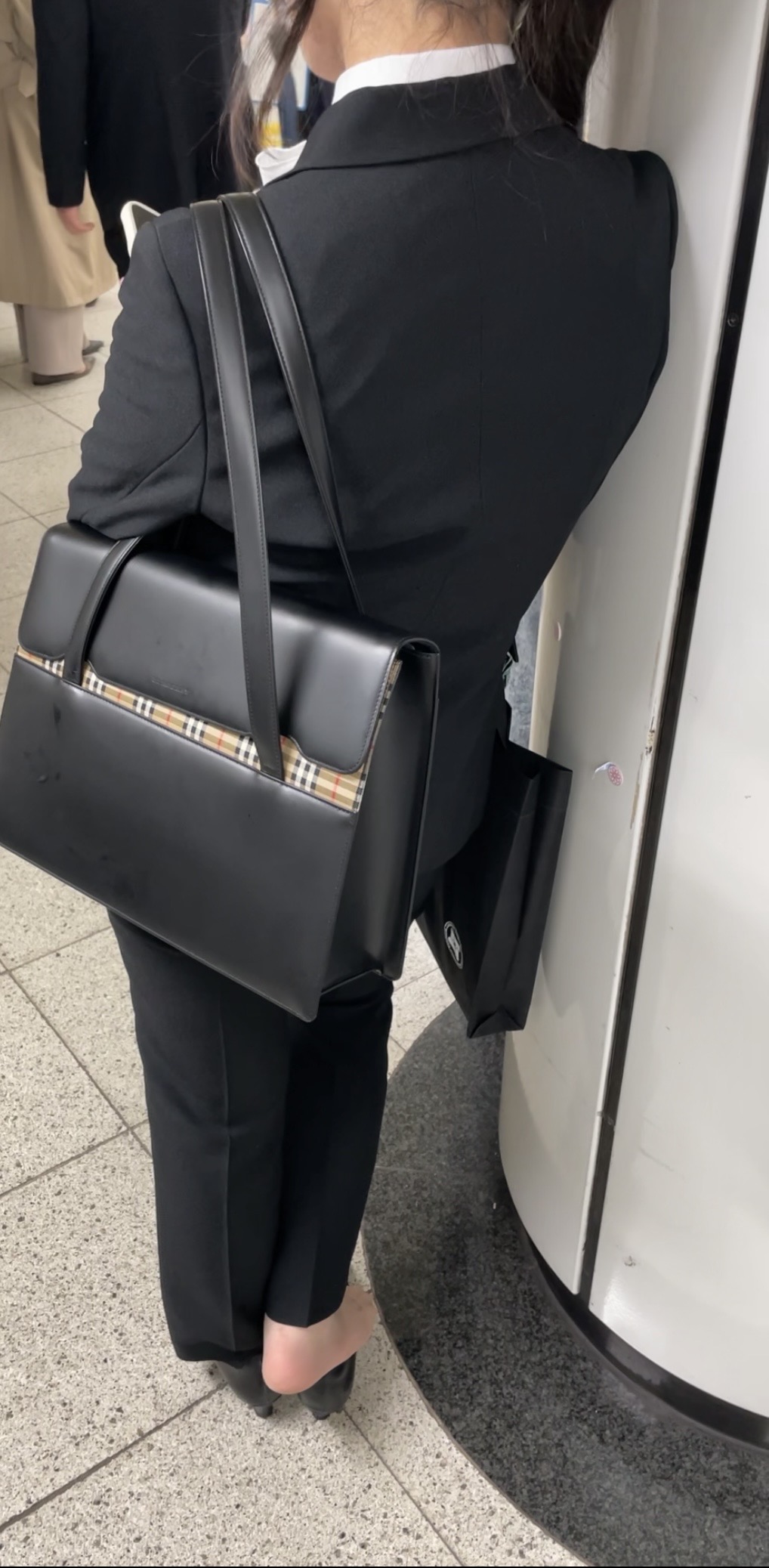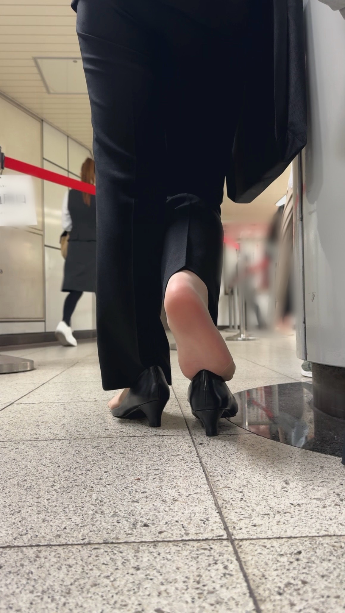 素晴らしいです!4月ならでは、キッチリスーツ姿のスト足全開ですね。人前でパンプス全脱ぎで、蒸れた足指までさらすなんて恥ずかしくないんでしょうか。完璧なショット、ありがとうございます。