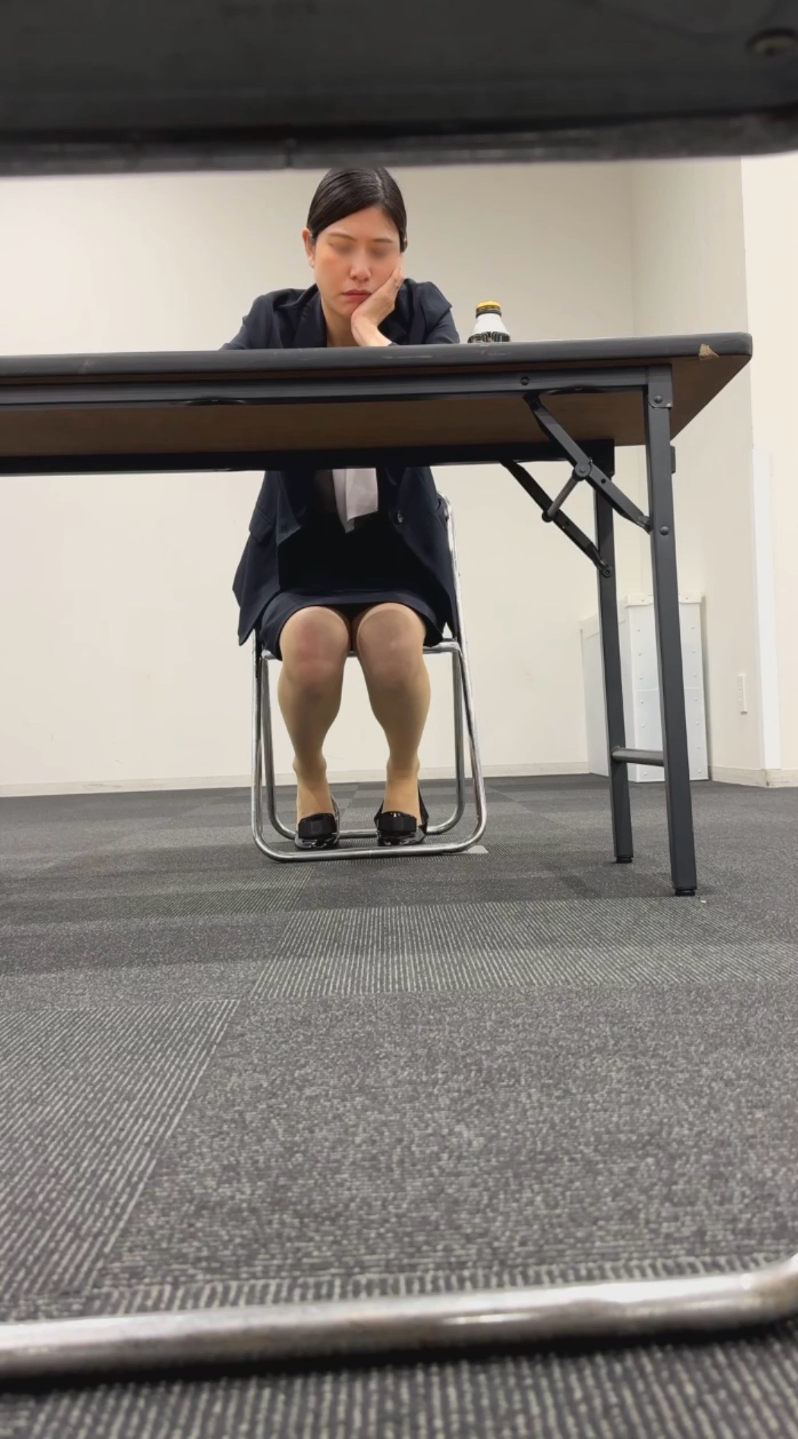 前回投稿した美形出展員さんと同じです。パンプス脱ぎは一瞬だけでしたが、撮影出来ました。足先もお納め下さい。