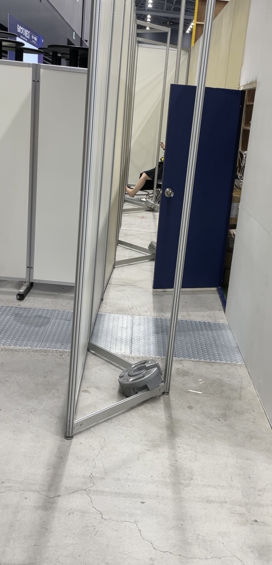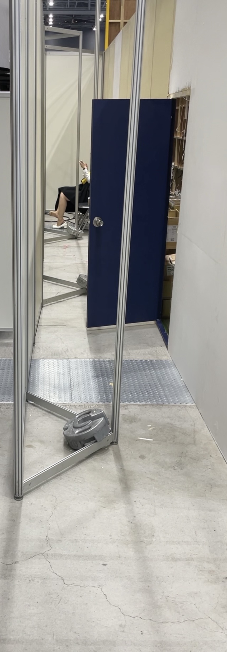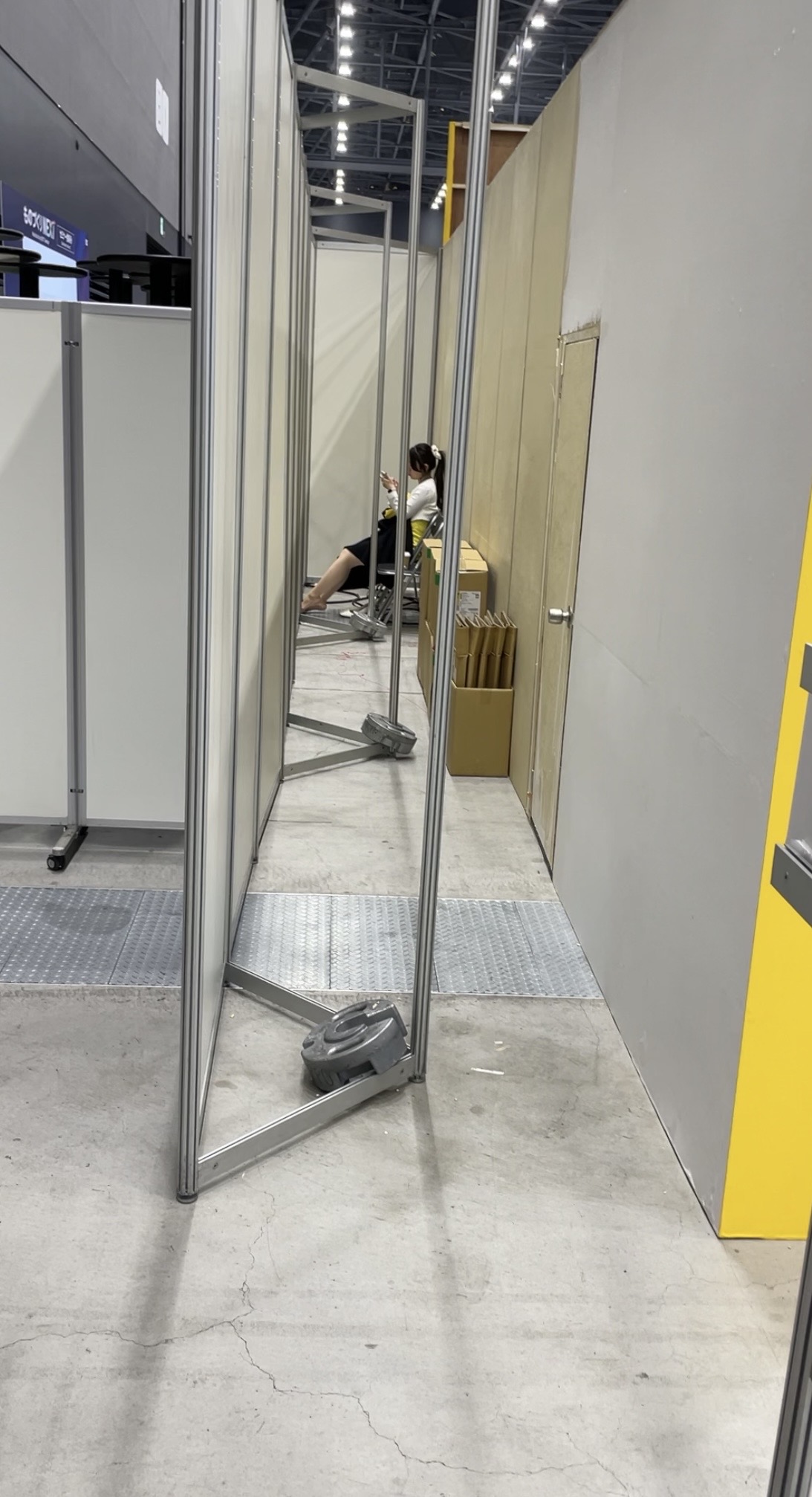 遠いアングルですみません。イベントコンパニオンさんがバックヤードの奥でパンプス全脱ぎしてスト足を解放しておりました。近くにはいけなかったため、遠くからのアングルになりますが、いかがでしょうか?