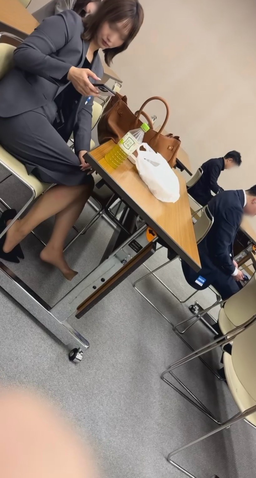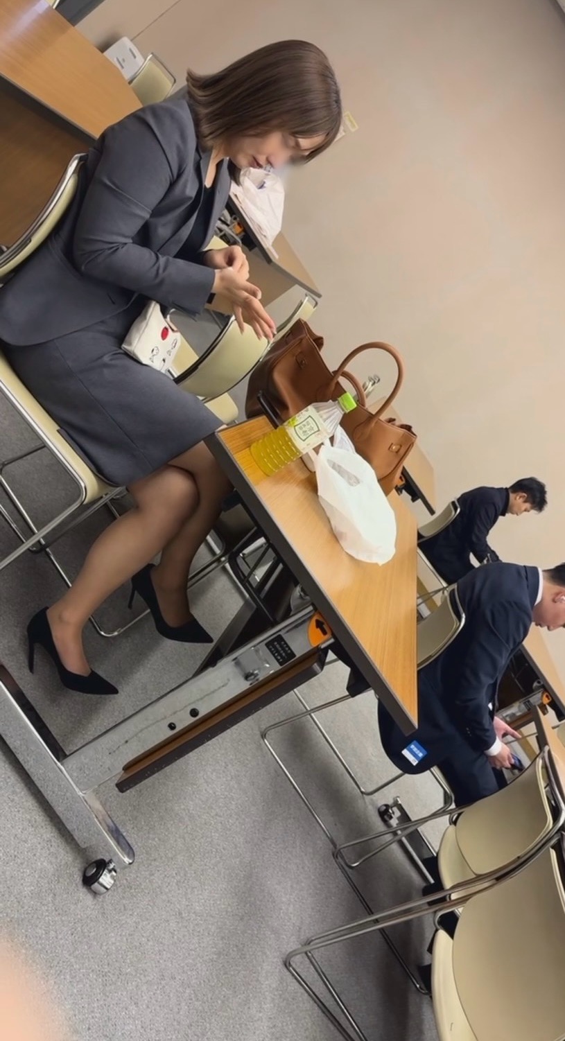 初めて投稿します!就活イベントで蒸れたパンプス脱いでる就活生がいました。顔はあまり撮れてないですが、お納め下さい。