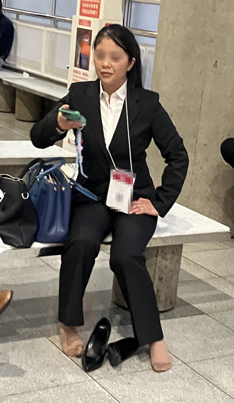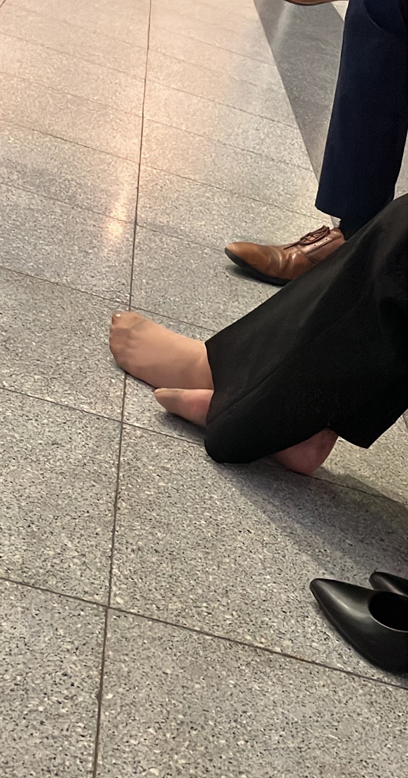 就活イベントで、就活生がパンプス脱いで解放させてました。同じアングルで申し訳ございません。バッチリつま先も撮れました。
