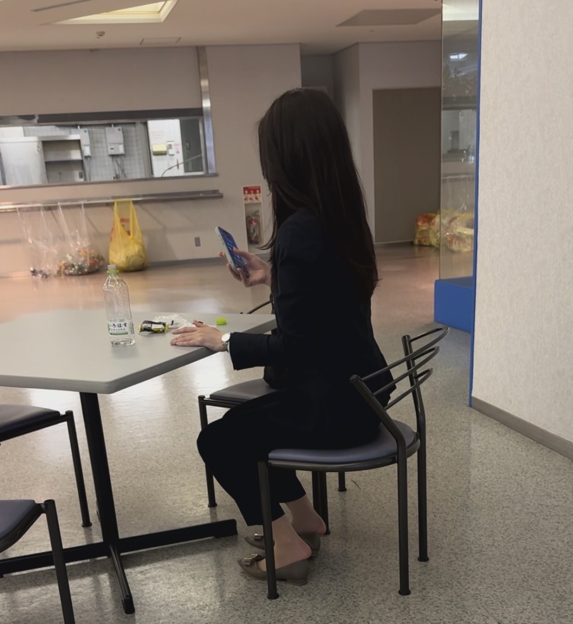 けいぽんさん、これはなかなか難しい位置どりでよく撮られましたね。素晴らしいです。ありがとうございます。そう、就活生は座るとすぐパンプス脱ぐ傾向があります。