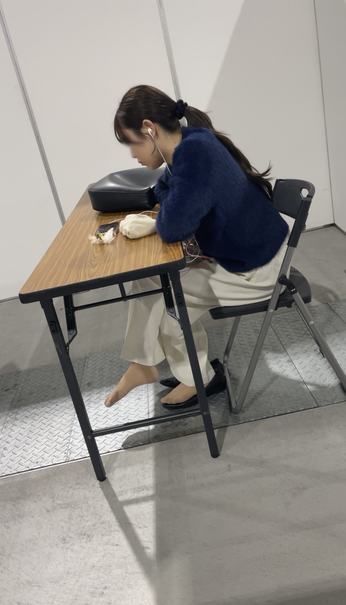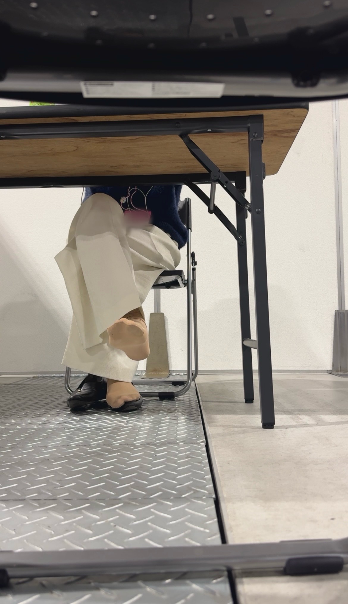 イベント来場員さんがパンプス全脱ぎで且つ足組みをしておりスト足を見せつけておりました。しっかりつま先を撮影出来ました。よろしくお願いします。