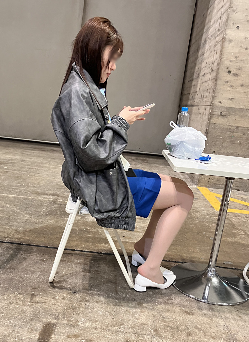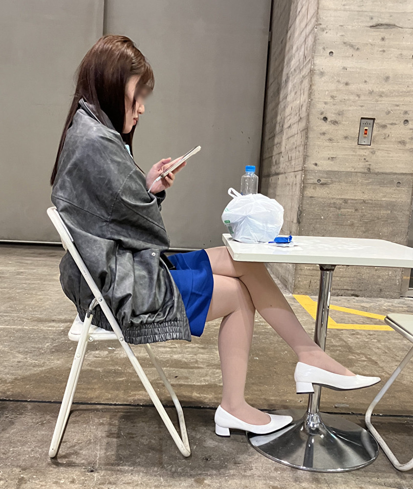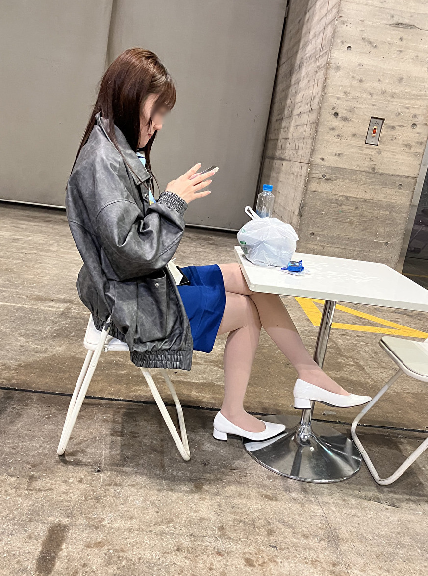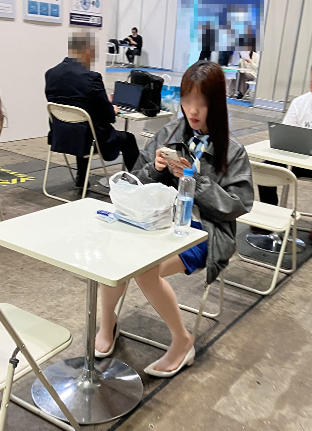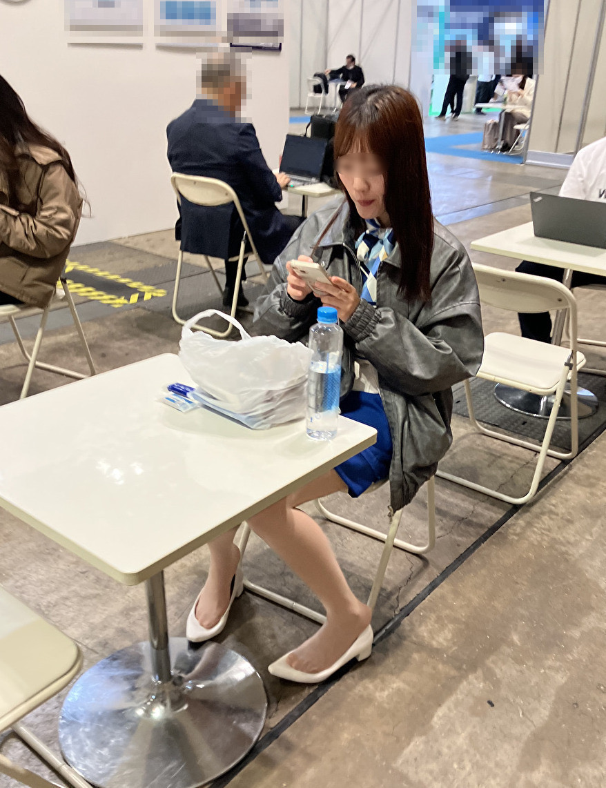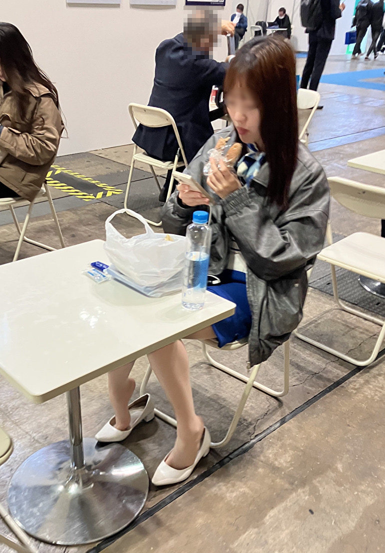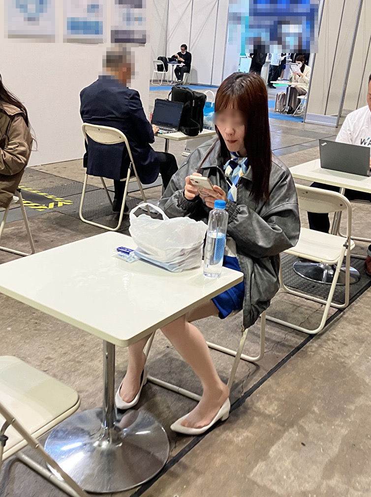 休憩場所にミニスカナチュストの美脚コンパニオンさんがいたので、眺めながら横を通り過ぎたら白パンプス全脱ぎじゃないですか。で、ゆっくりもう一往復です。