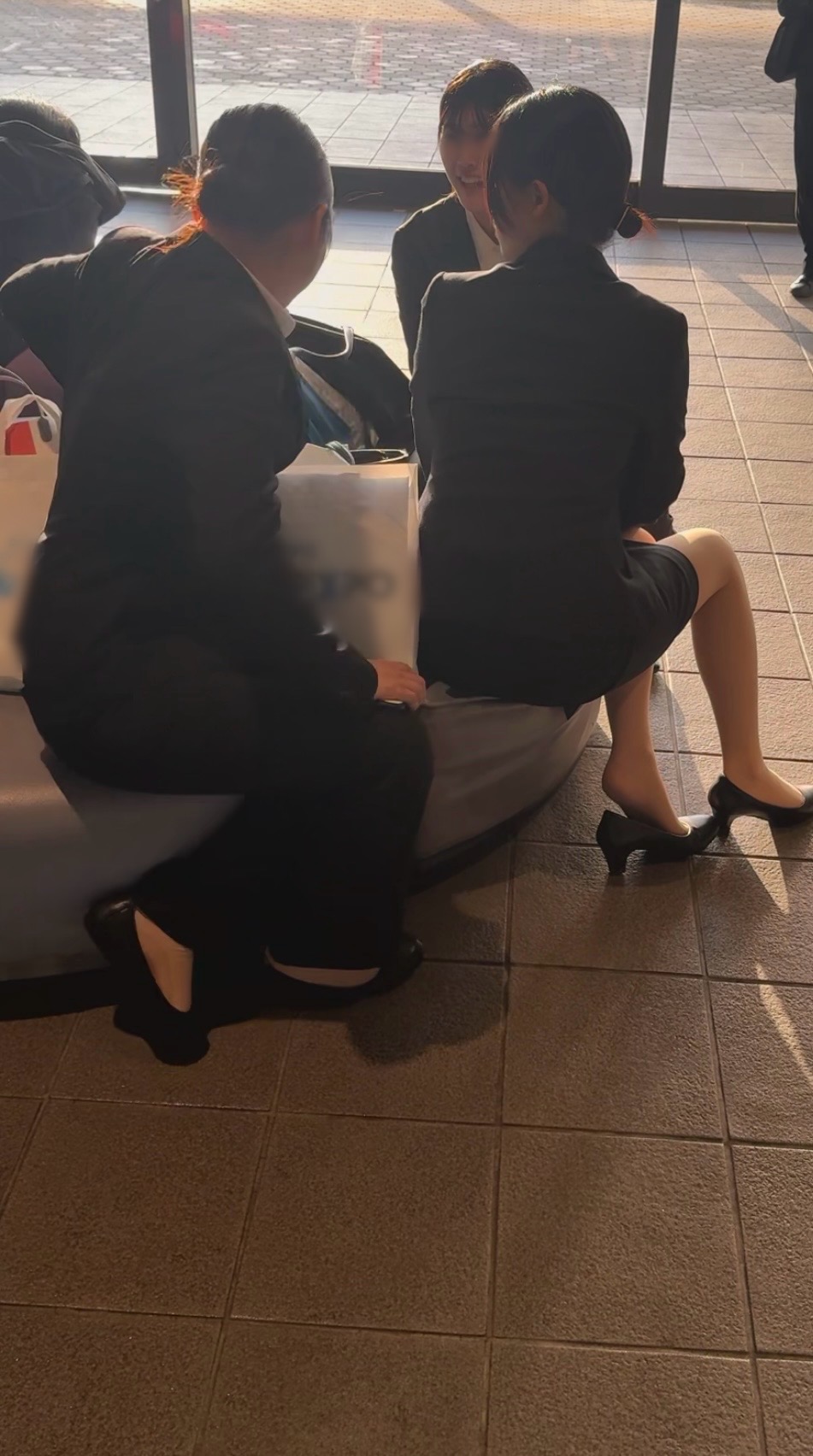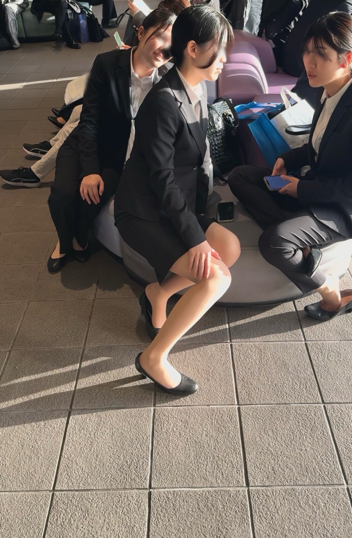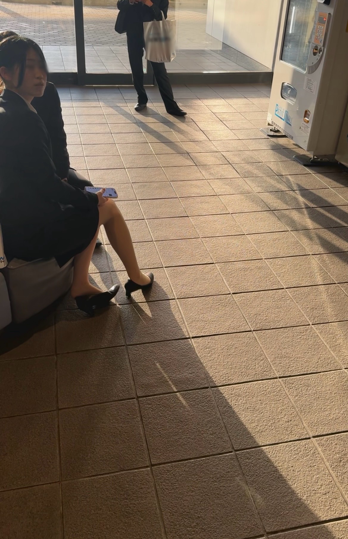 けいぽんさん、これはなかなか難しい位置どりでよく撮られましたね。素晴らしいです。ありがとうございます。そう、就活生は座るとすぐパンプス脱ぐ傾向があります。