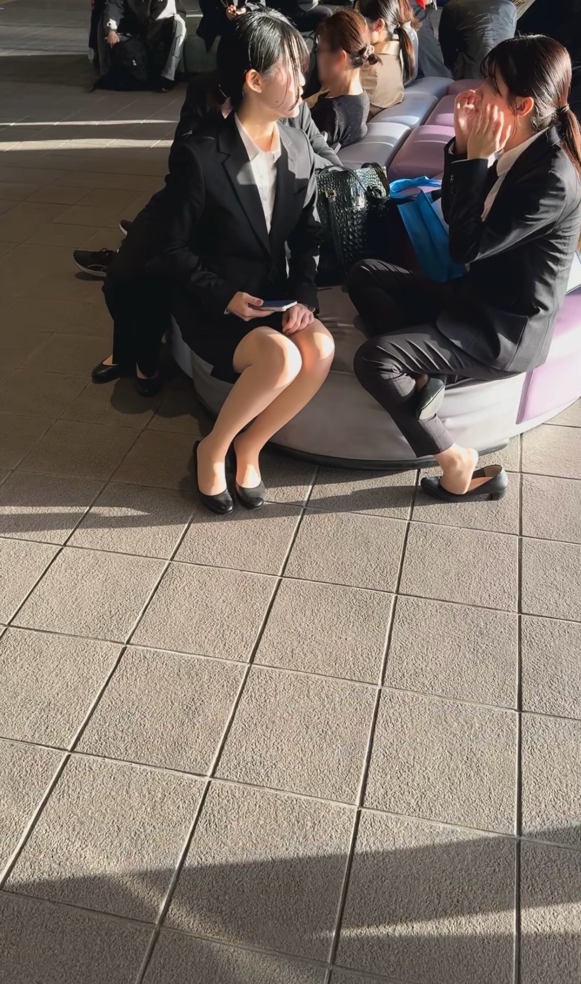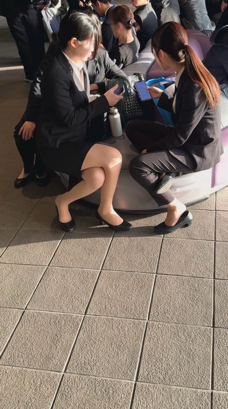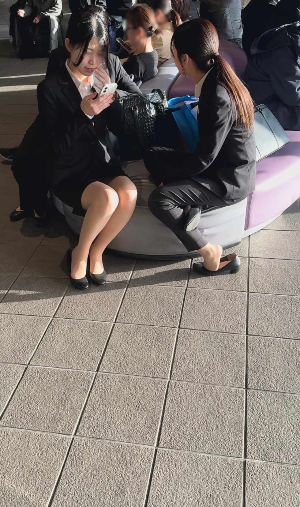 けいぽんさん、これはなかなか難しい位置どりでよく撮られましたね。素晴らしいです。ありがとうございます。そう、就活生は座るとすぐパンプス脱ぐ傾向があります。