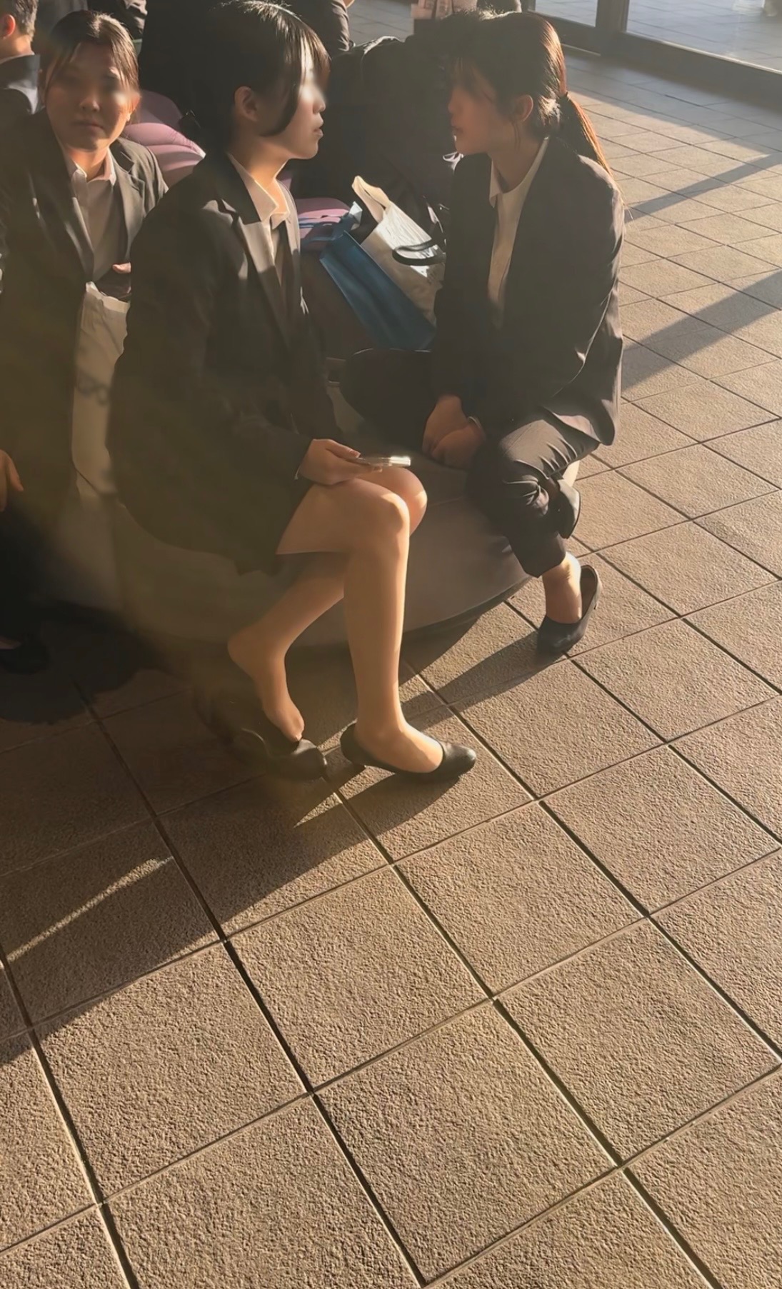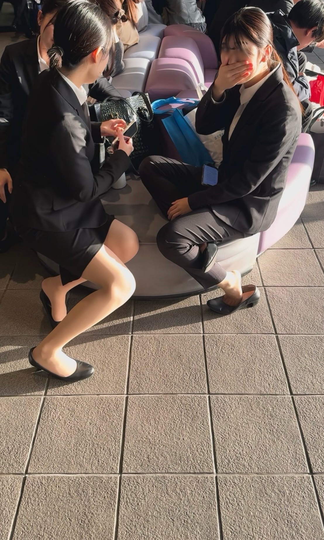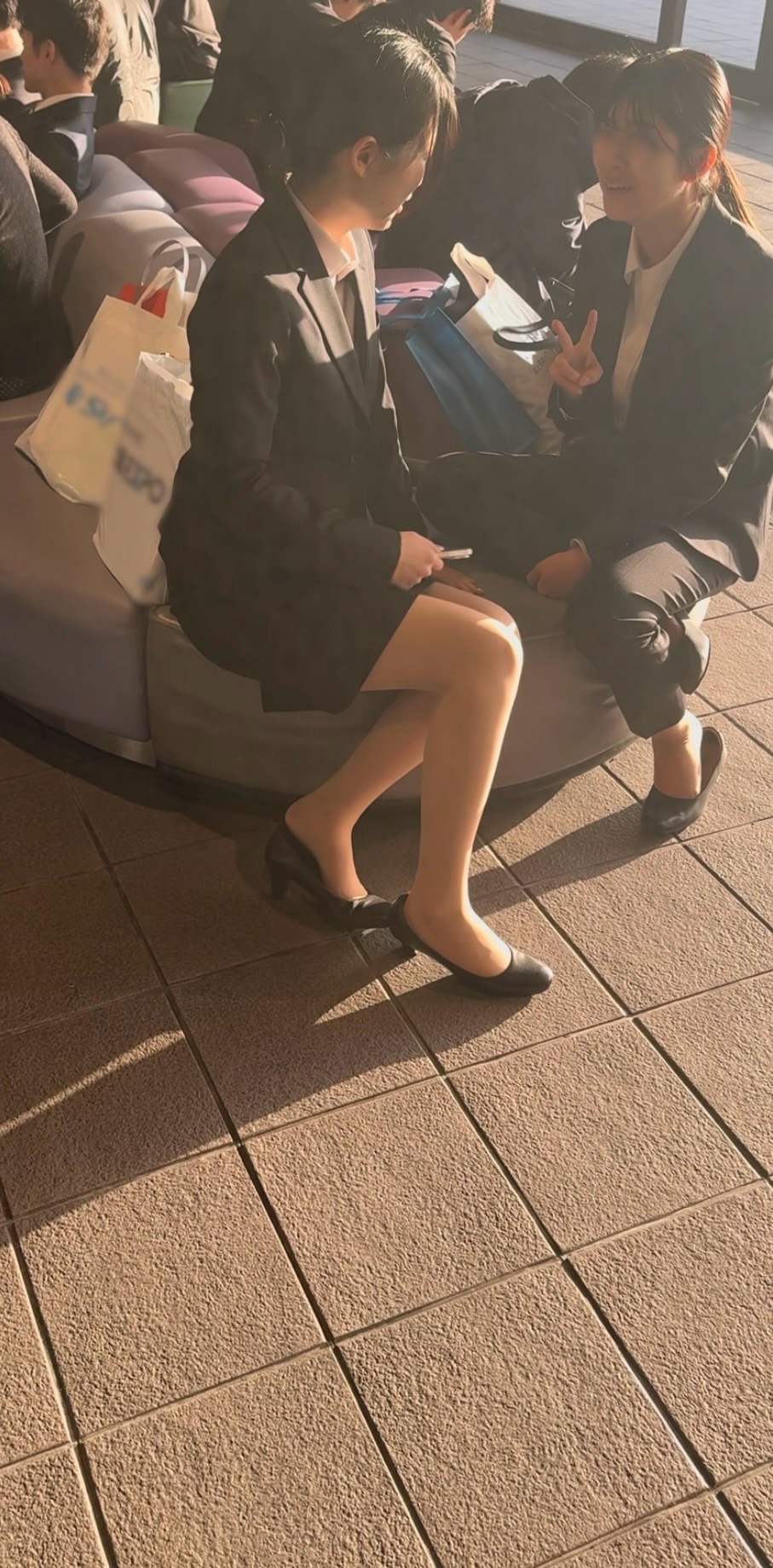 就活イベントでパンプス脱いでスト足解放している美人就活生を見かけたため撮影しました。しばらく経ったら履いてしまいましたが、しっかりと納めました。