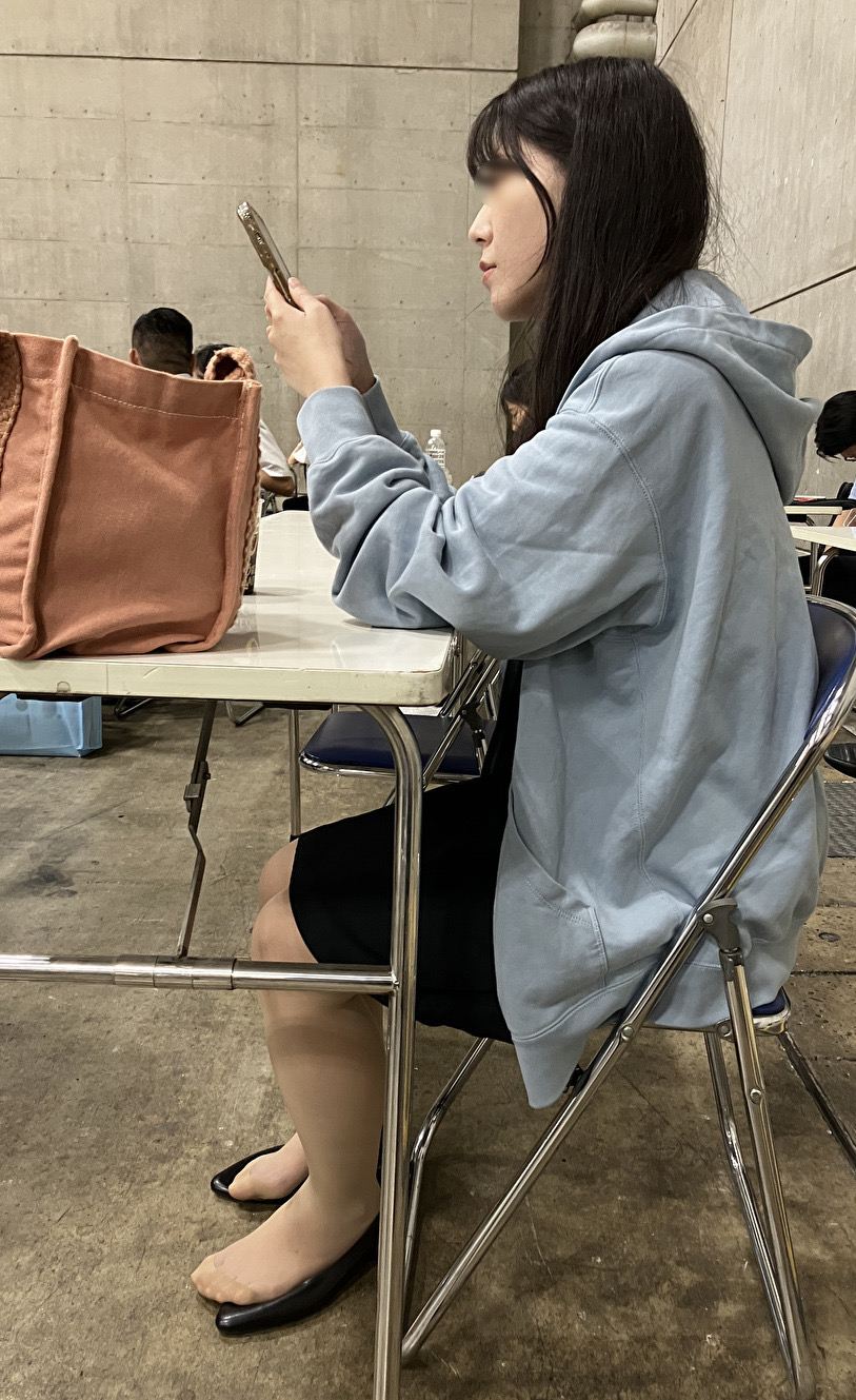 リクスーのパンツ姿で大胆なスト足姿、堪能させていただきました。ありがとうございます。 後に上げられた動画、最初、ショートストッキング半脱ぎでなんていう姿なんだろうと思いましたが(リブの締め付けが痒いのかと思いました)、かかとに絆創膏を貼るためだったんですね。しかし、けいぽんさんが隣に座っている方のスト足を、こんなに晒してしまうとは。きっちり動画におさめて素晴らしいです。