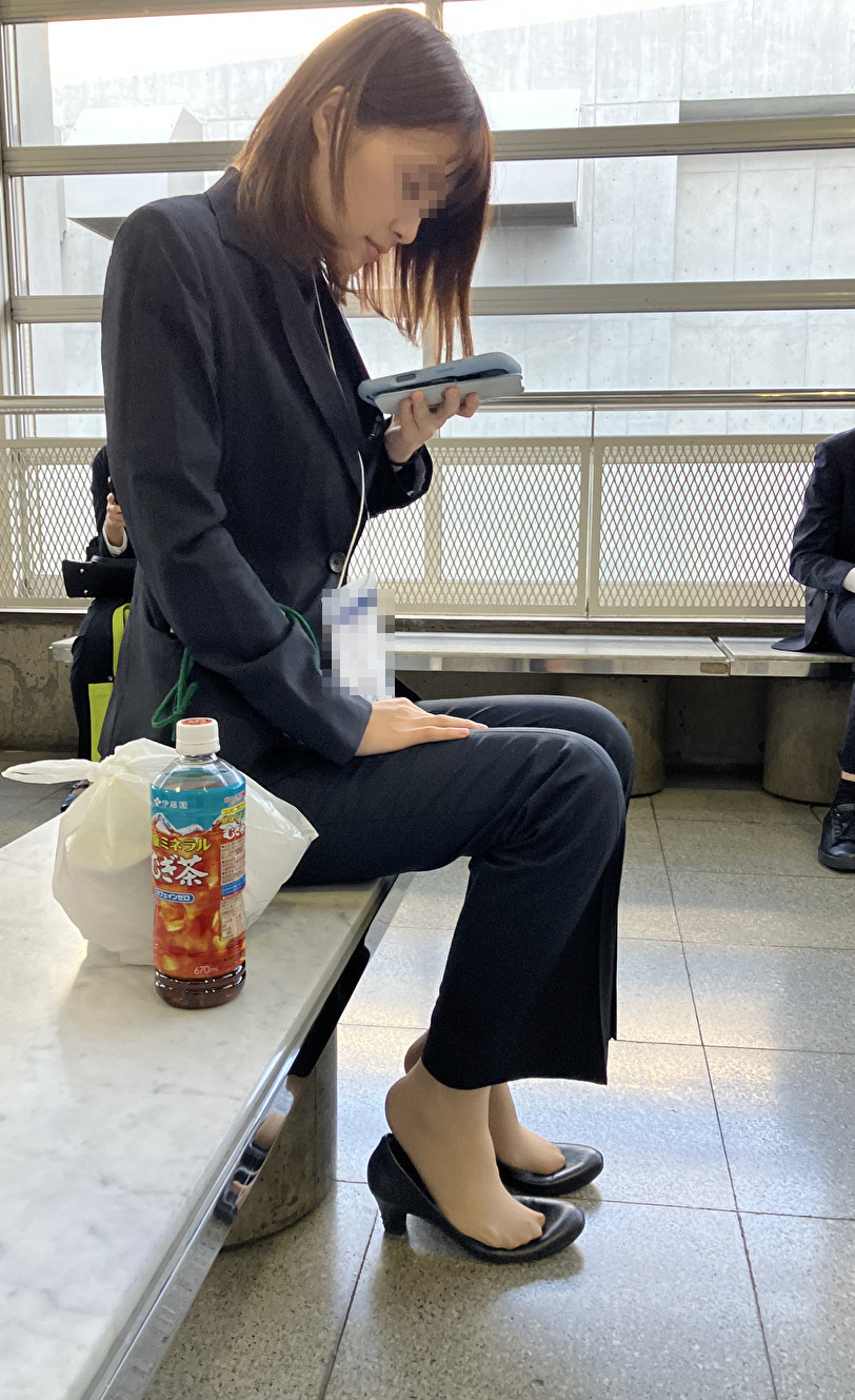 前回投稿した美形出展員さんと同じです。パンプス脱ぎは一瞬だけでしたが、撮影出来ました。足先もお納め下さい。