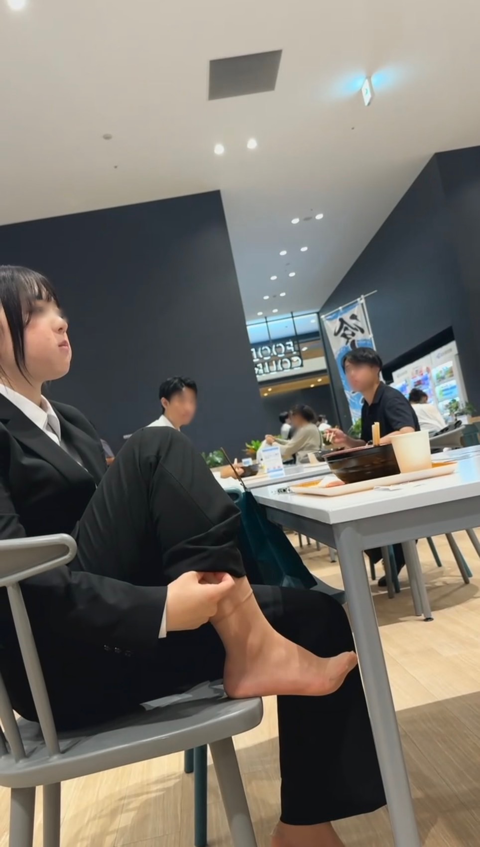 イベントでかなりの美人女性がローファー脱いでスト足解放させてました。モザイク越しにも分かりますがかなり美人の方で、収めることが出来ました。また座ったタイミングでスト足を後ろからいいポジションで撮影。いかがでしょうか。