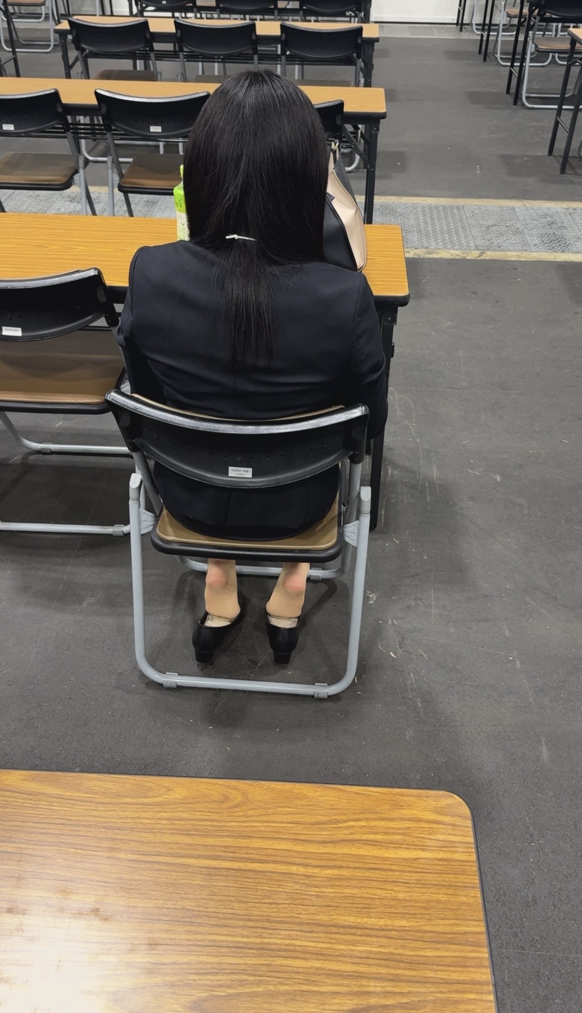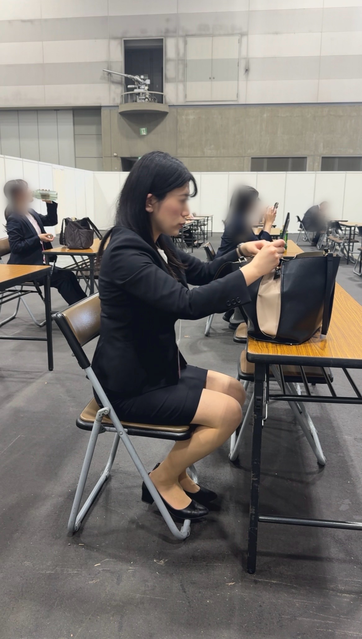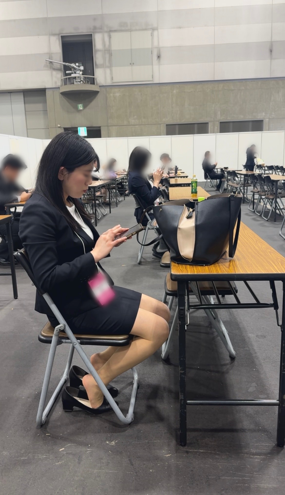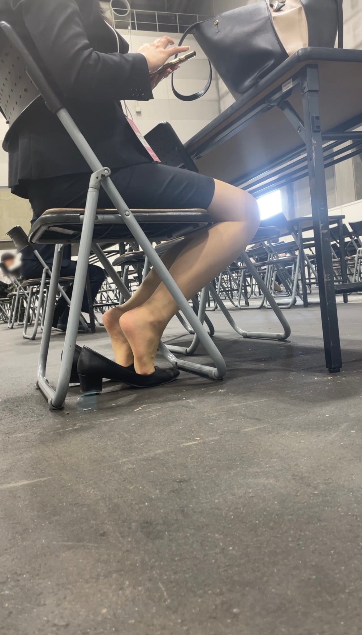 4.来場員 パンプス脱ぎ(足組み)   就活イベ出展員 パンプス脱ぎ   某保険出展員 パンプス履き   黒スト全開   就活生 パンプス脱ぎ