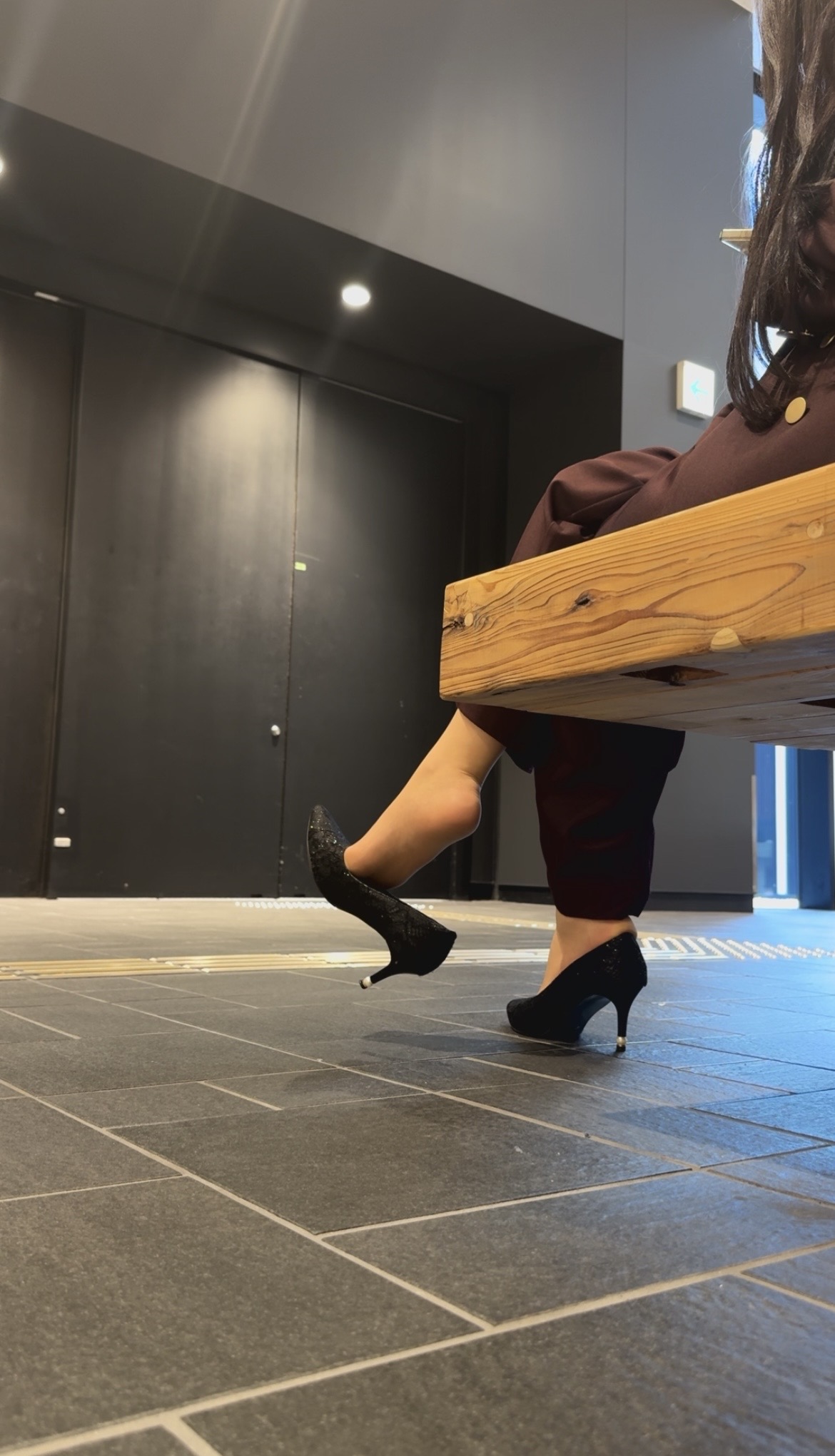よしよしさんありがとうございます。かかとを脱いてパンプス半脱ぎ状態、素晴らしいですね。前脱ぎは抵抗があるのか、半脱ぎする方多いですよね。