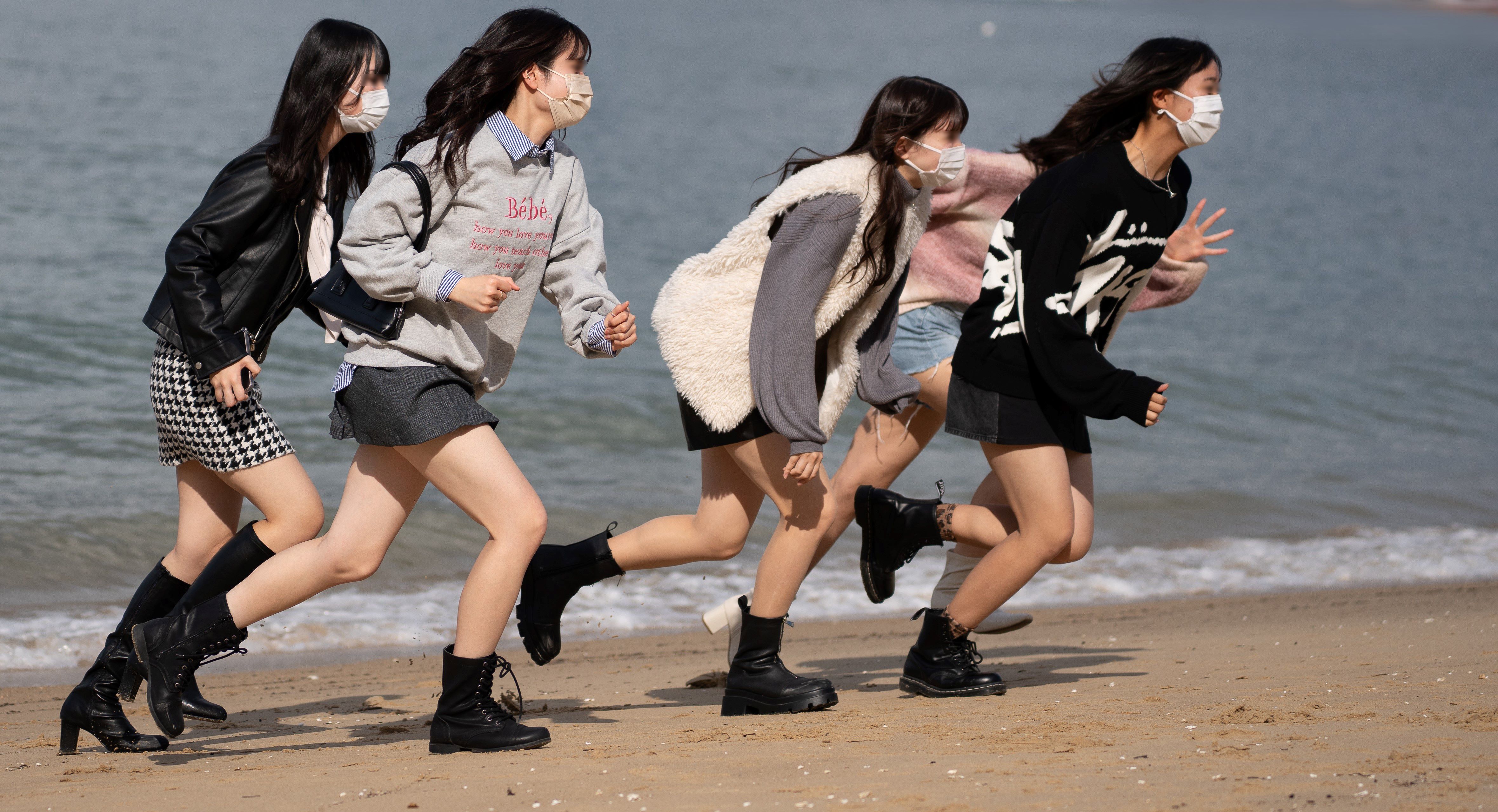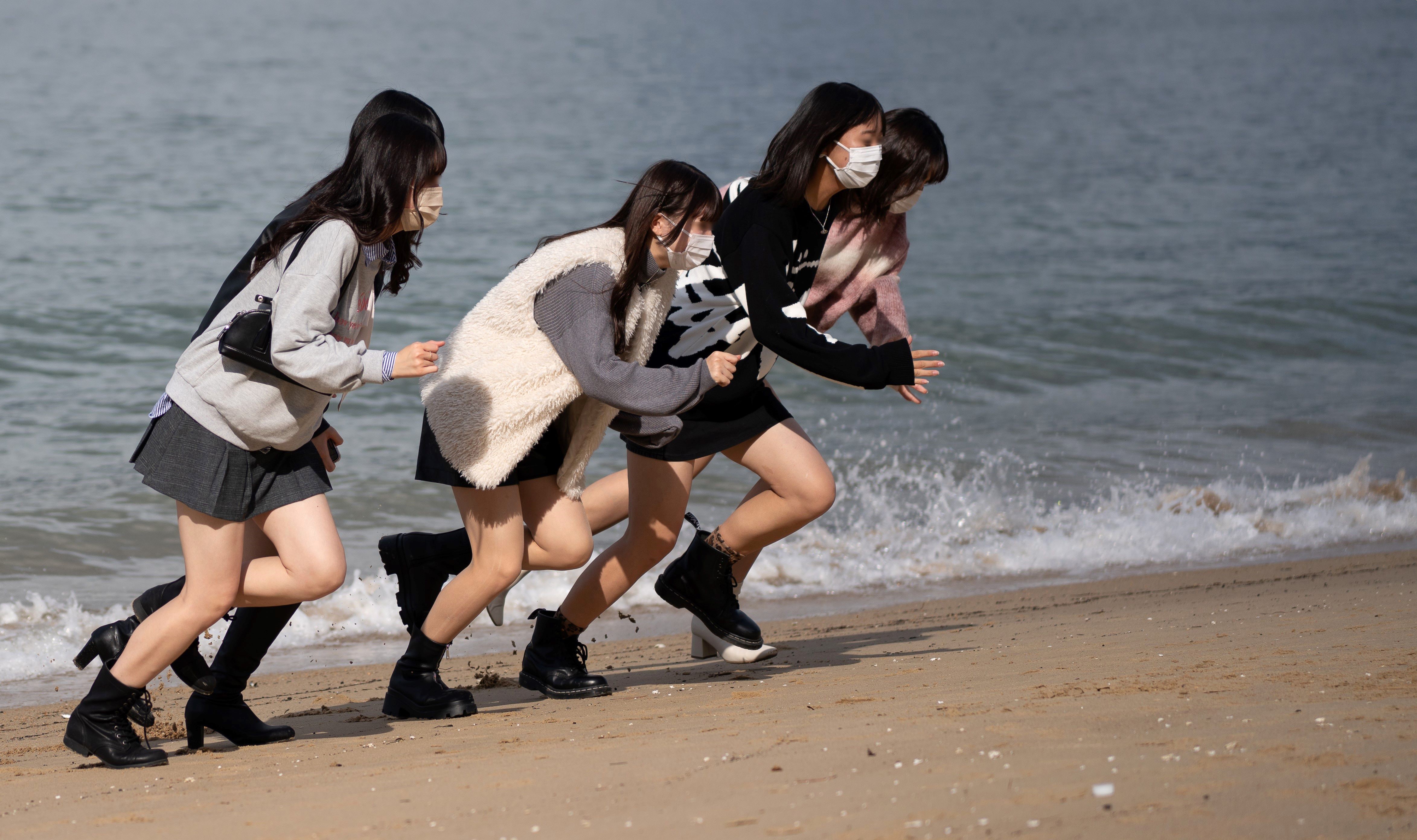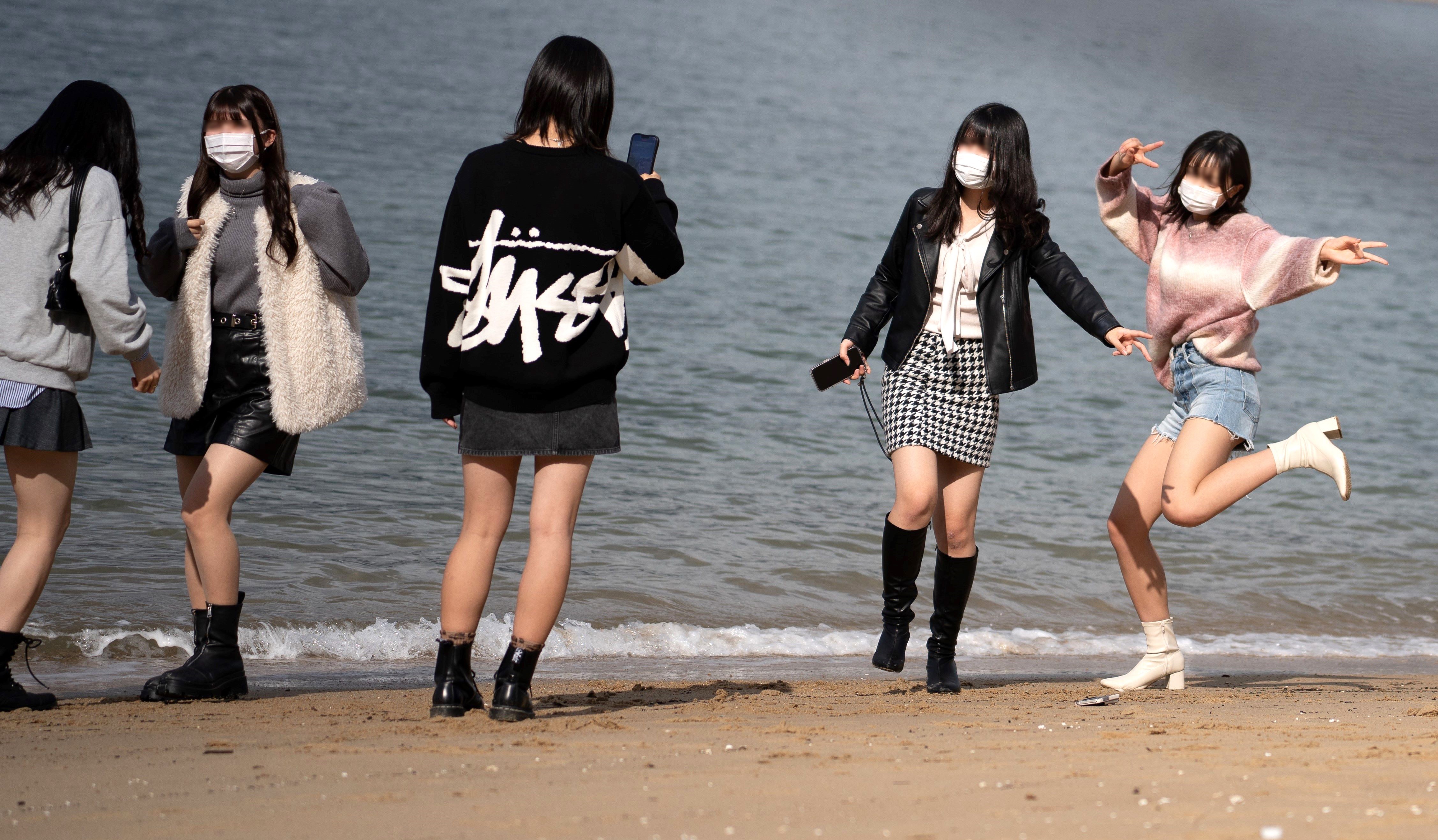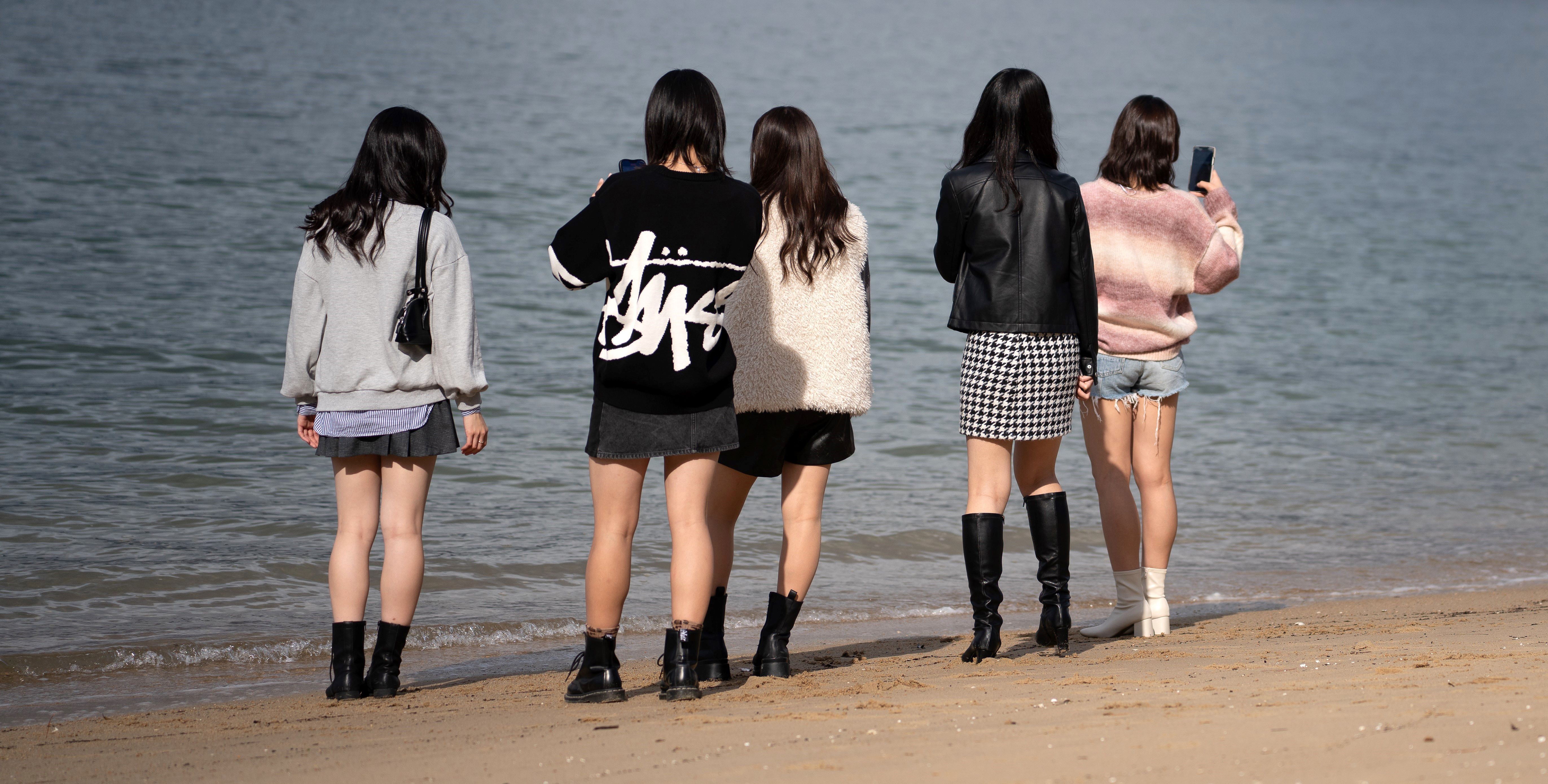 海辺で青春!をしているおそらく私服JK達…楽しそうですね