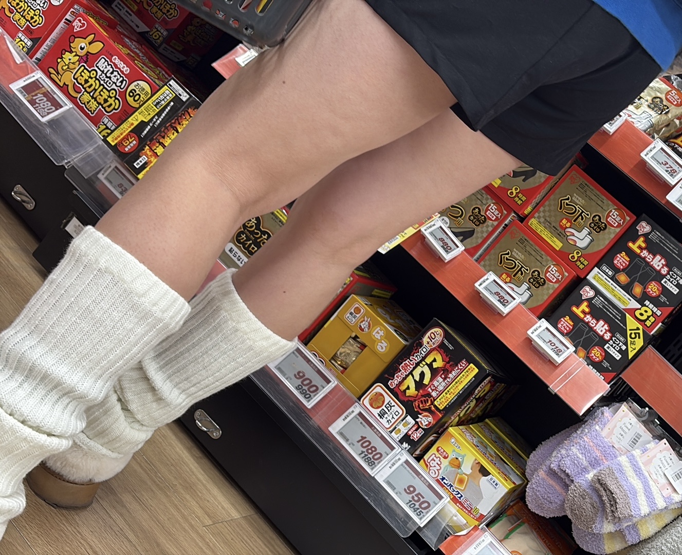 足首周りはしっかりと防寒してるのに、太ももはしっかりと出してるのがクッソエロス!脚の形もよさそうですね!