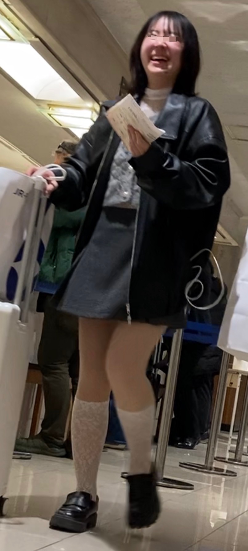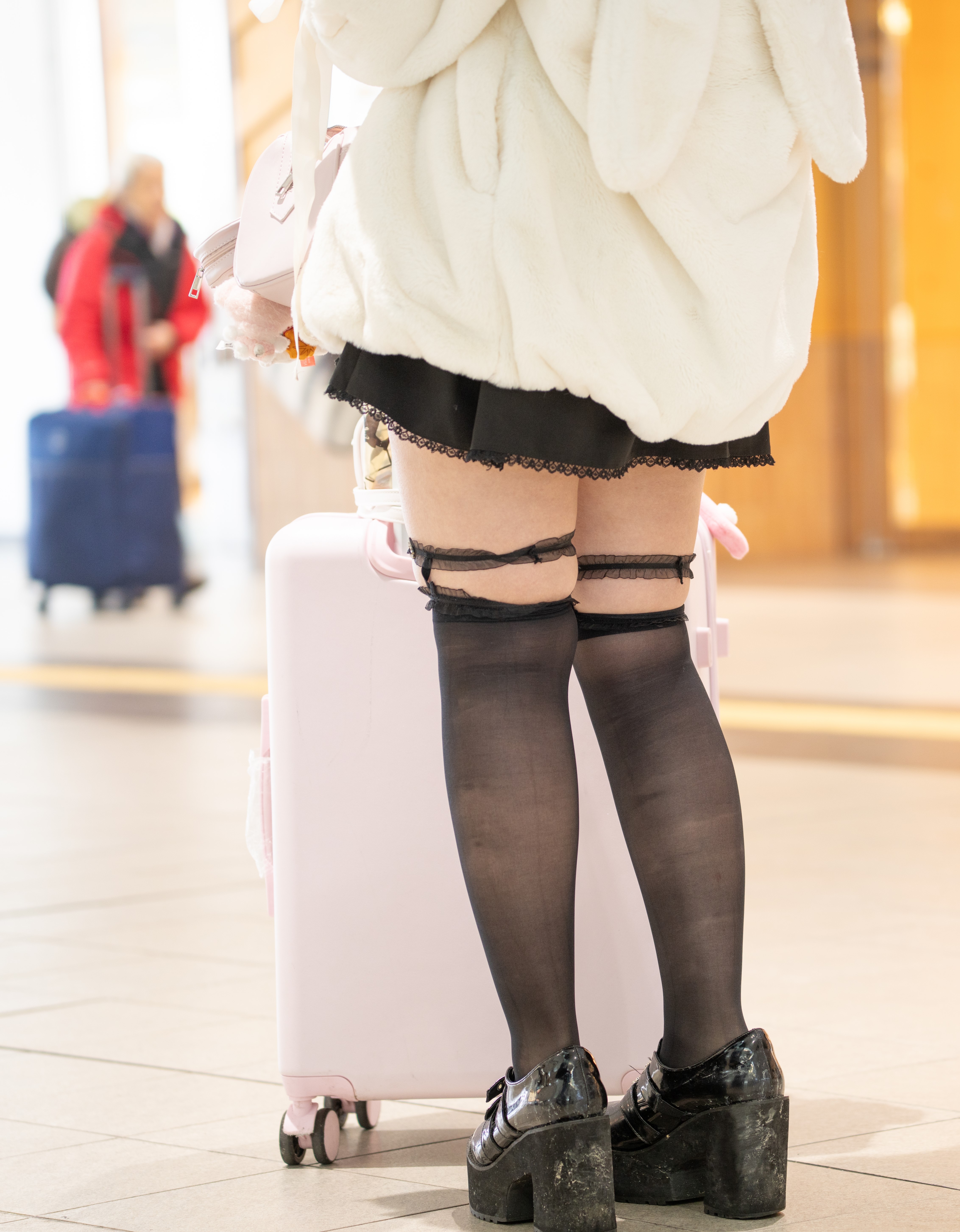 もふもふで大きな上着から出るスラッとした足…