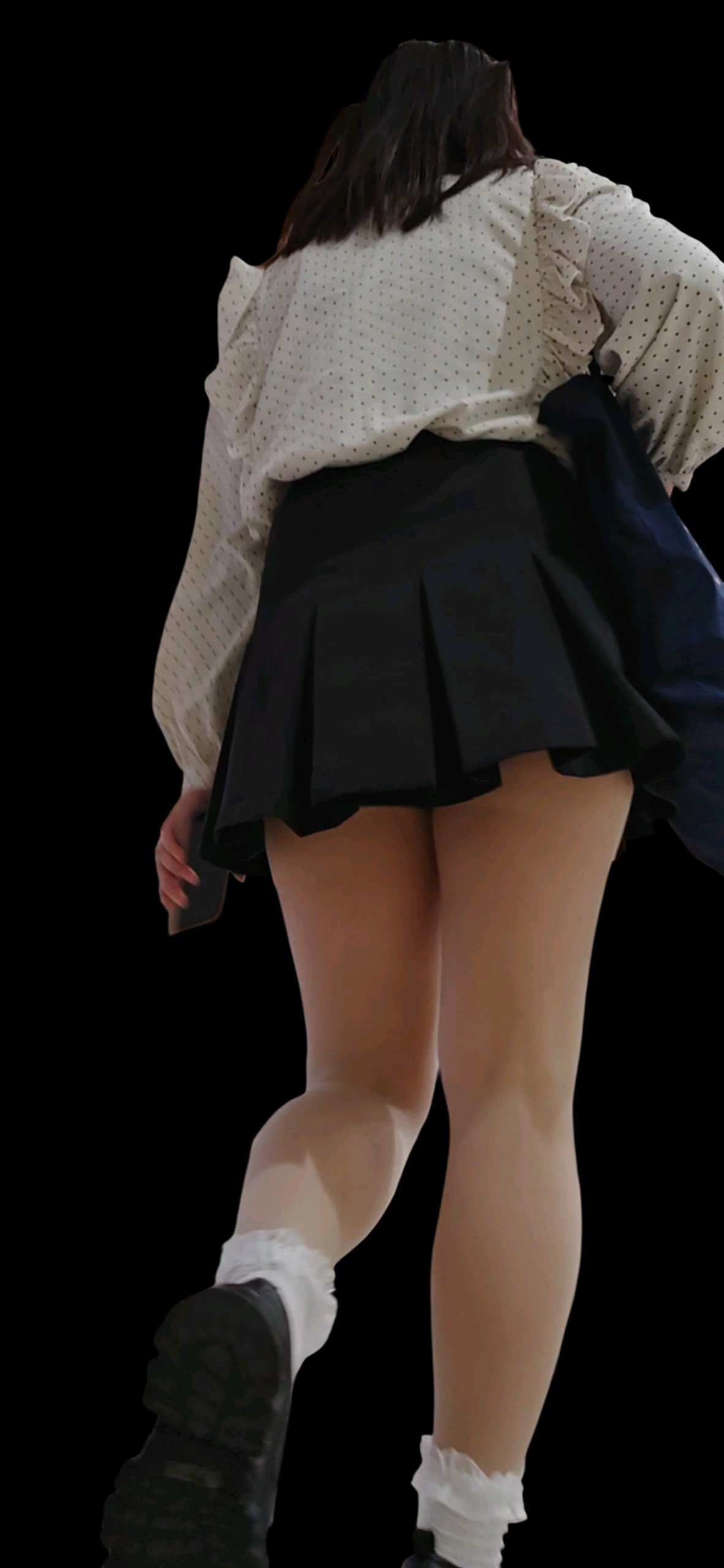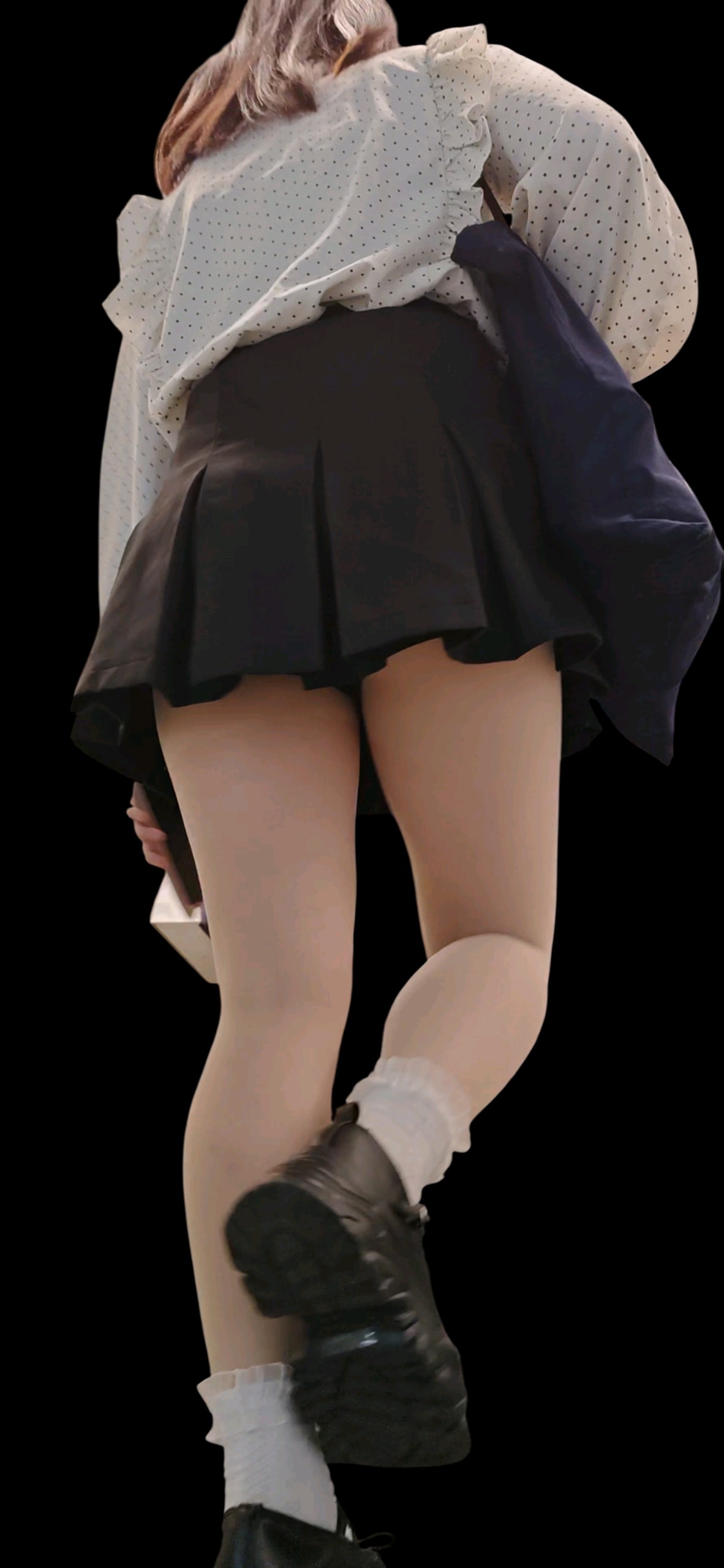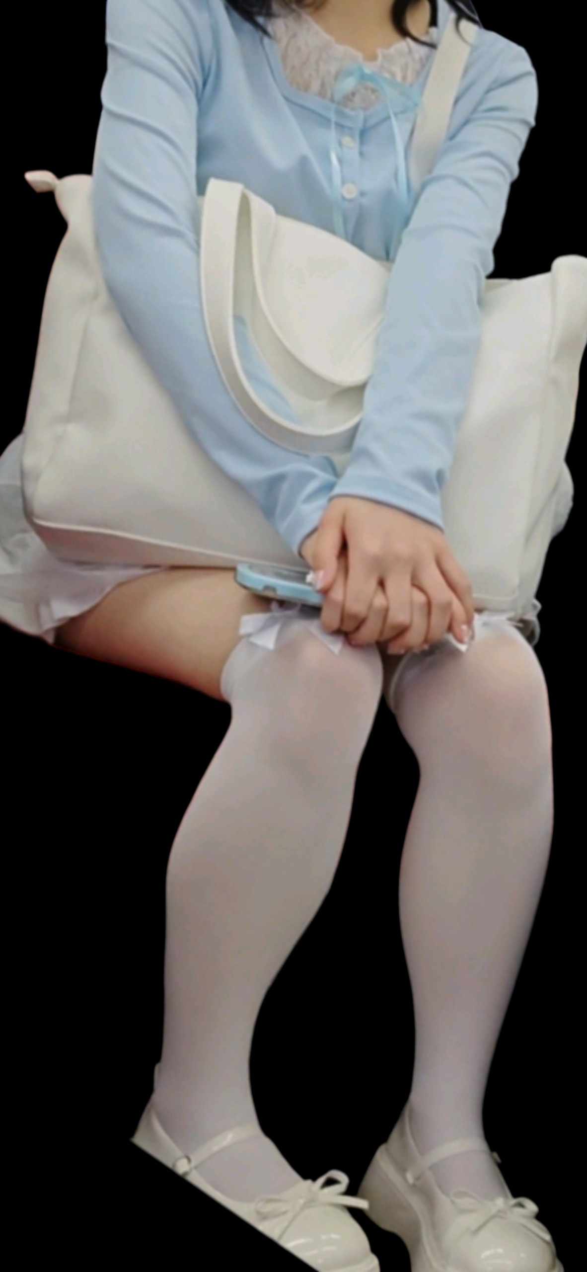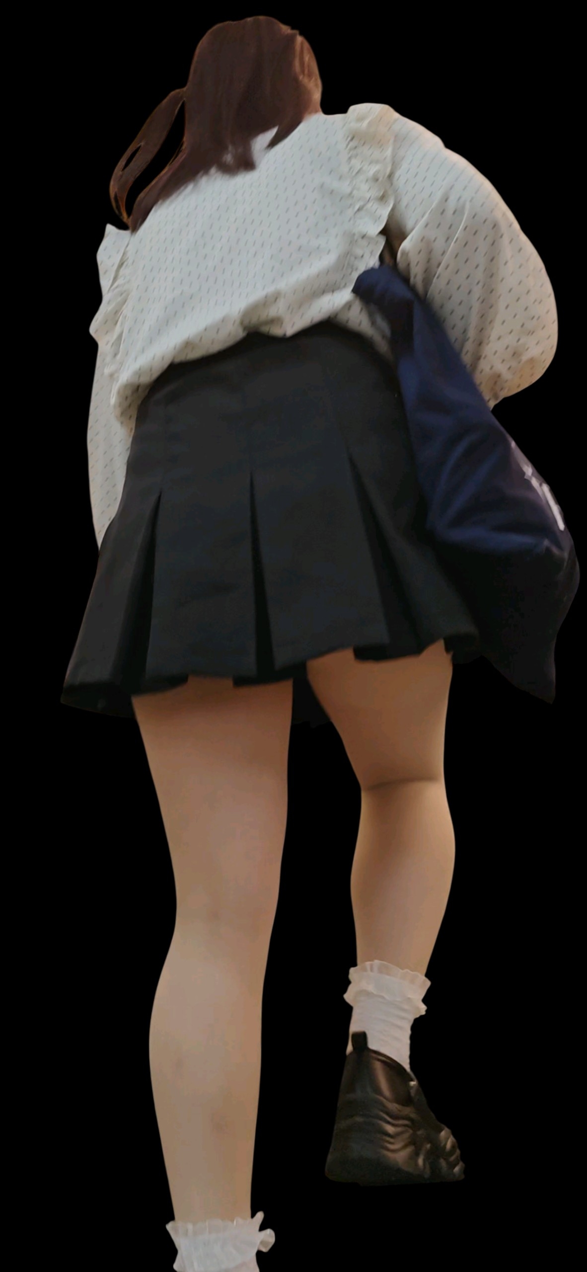 久々の白ニーハイたんと黒のボックスプリーツミニ