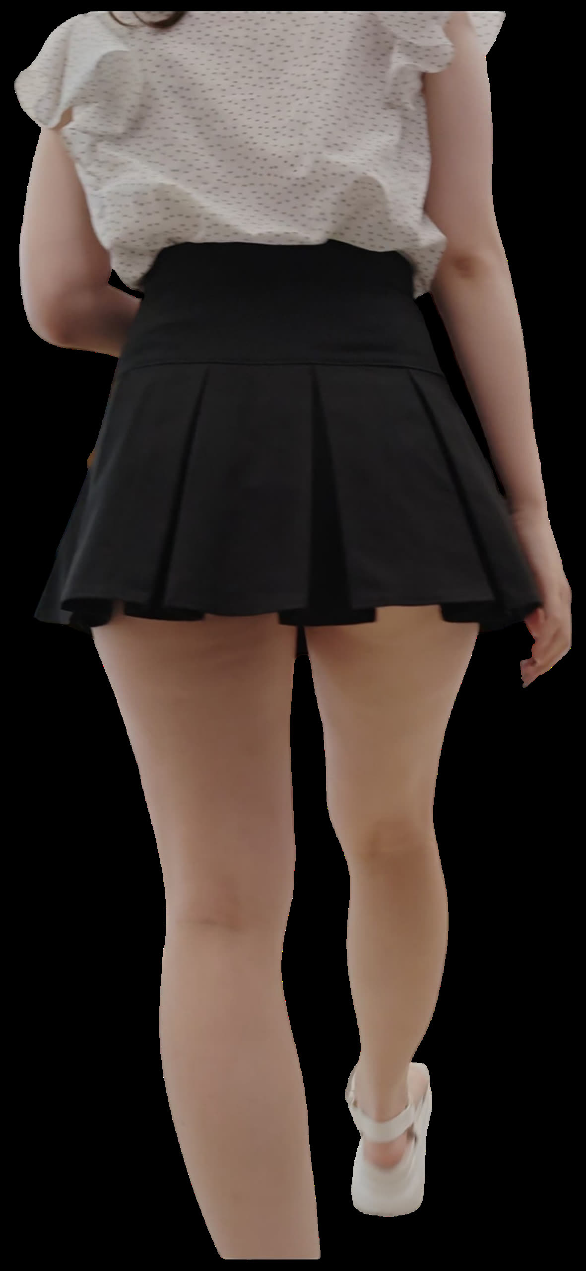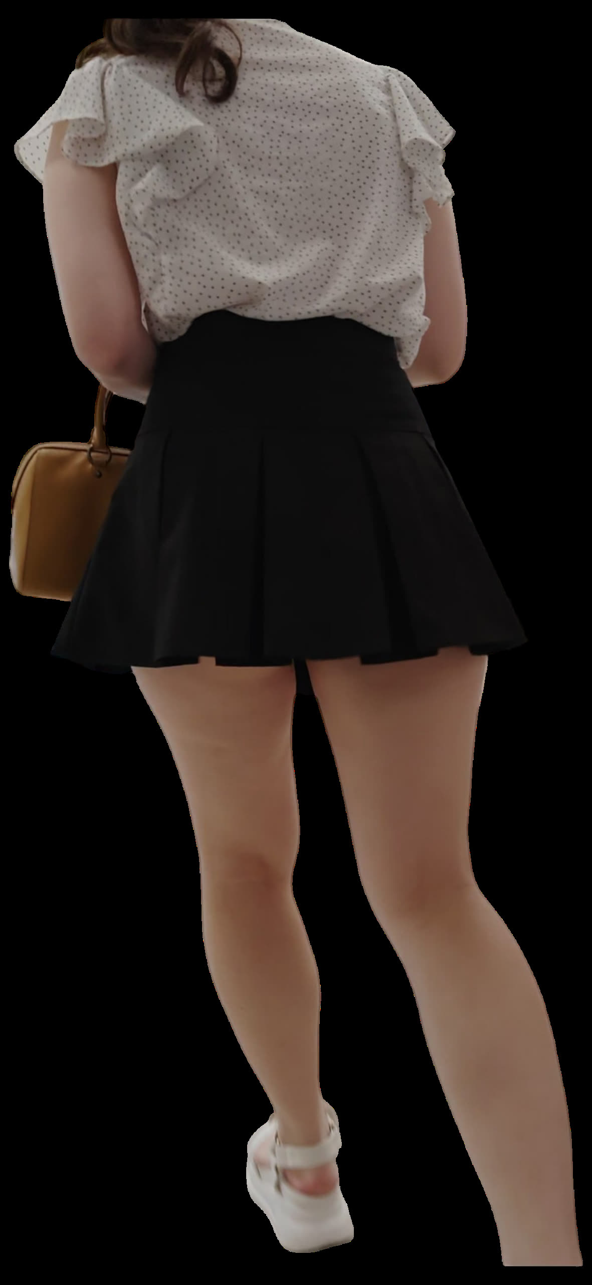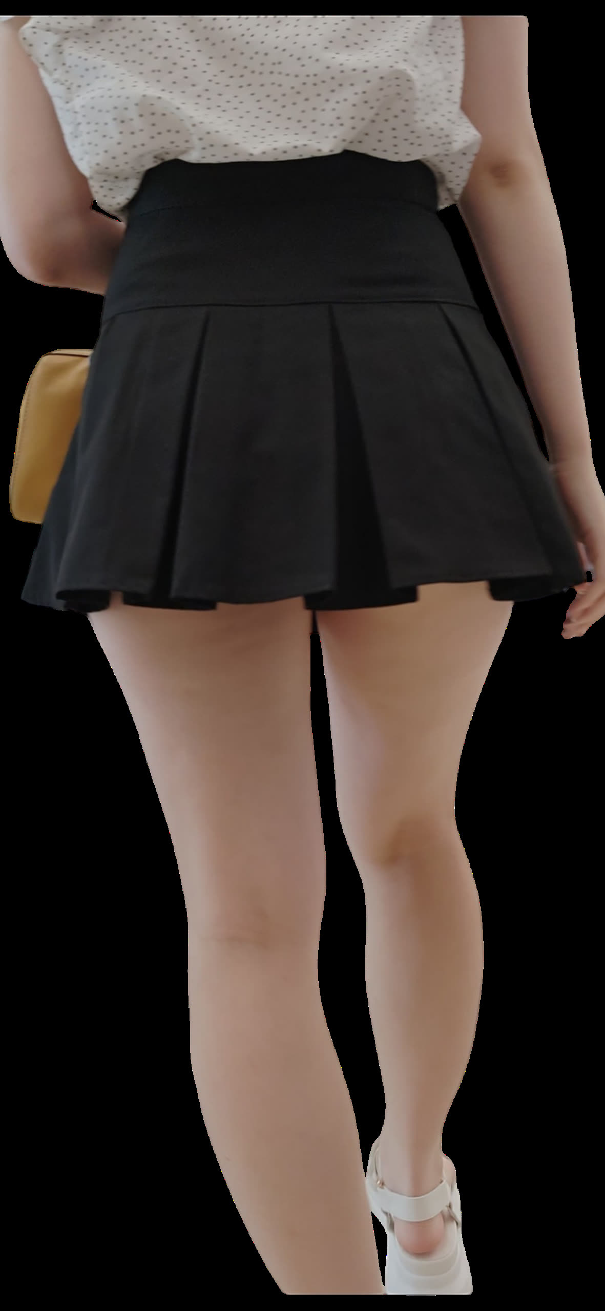 美脚お姉さんのスカートを抑える仕草いいですね!