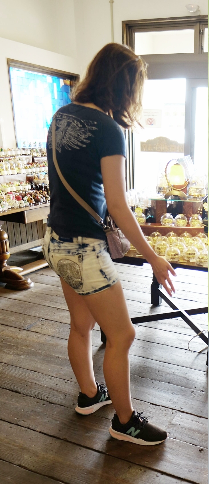 デニムショーパンで太もも丸出し