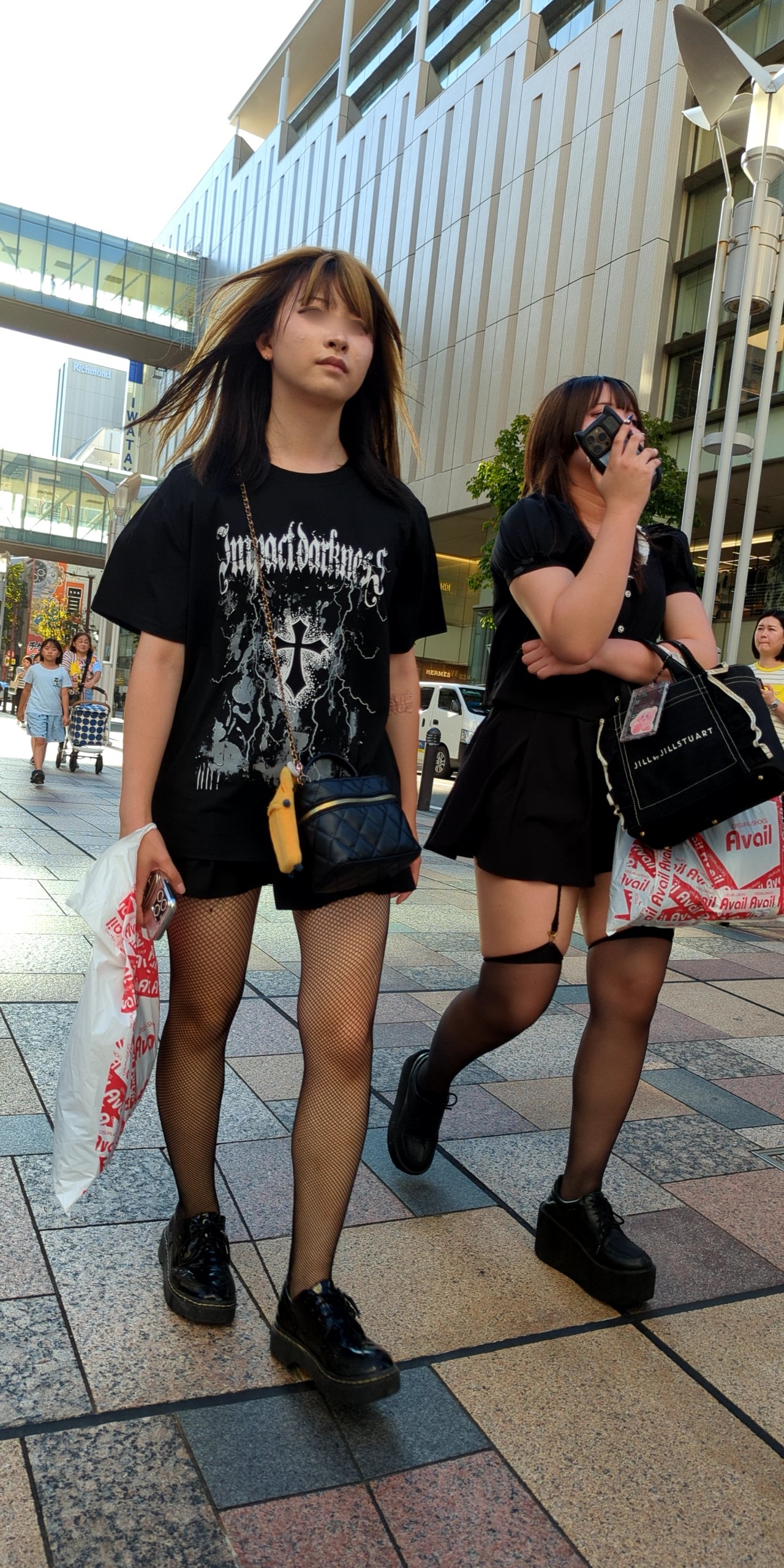 1枚目の網タイツの子は日焼けしたら凄い事になったりして?
