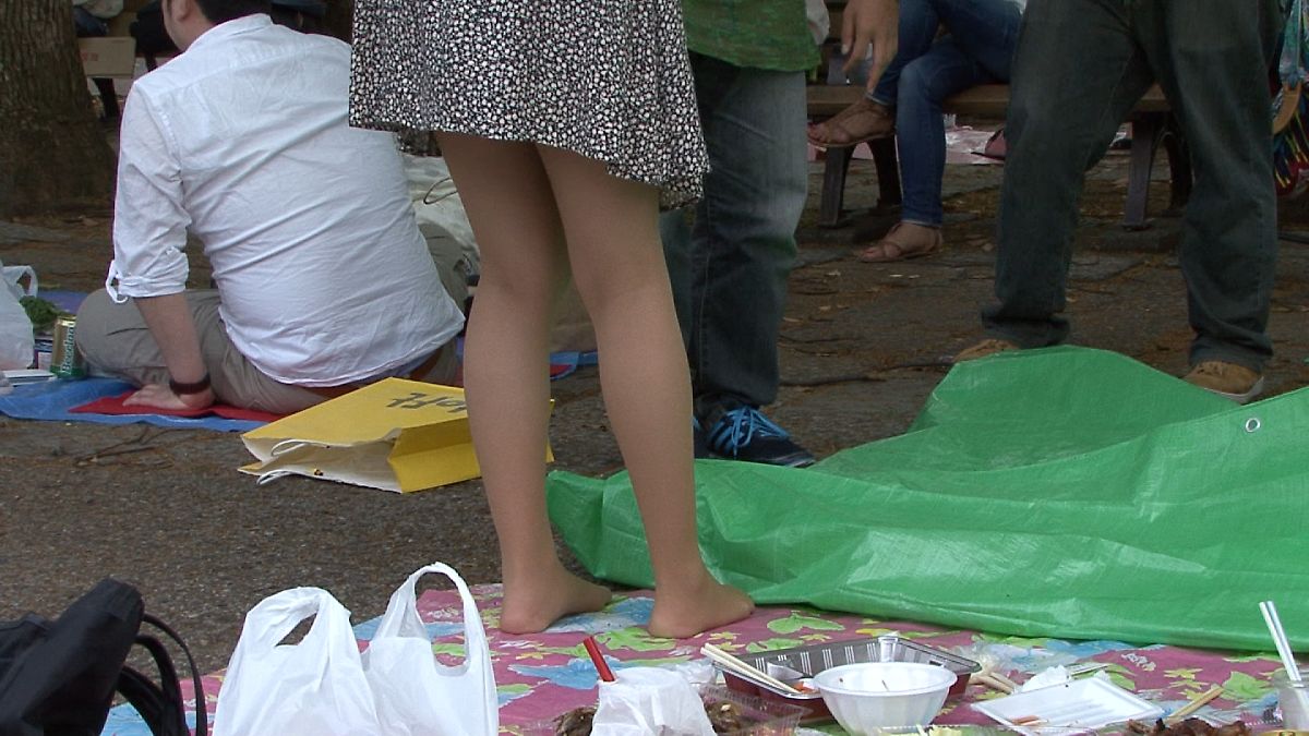 こんなシーン見たら花見どころではないですね、まるでストリップショーです。