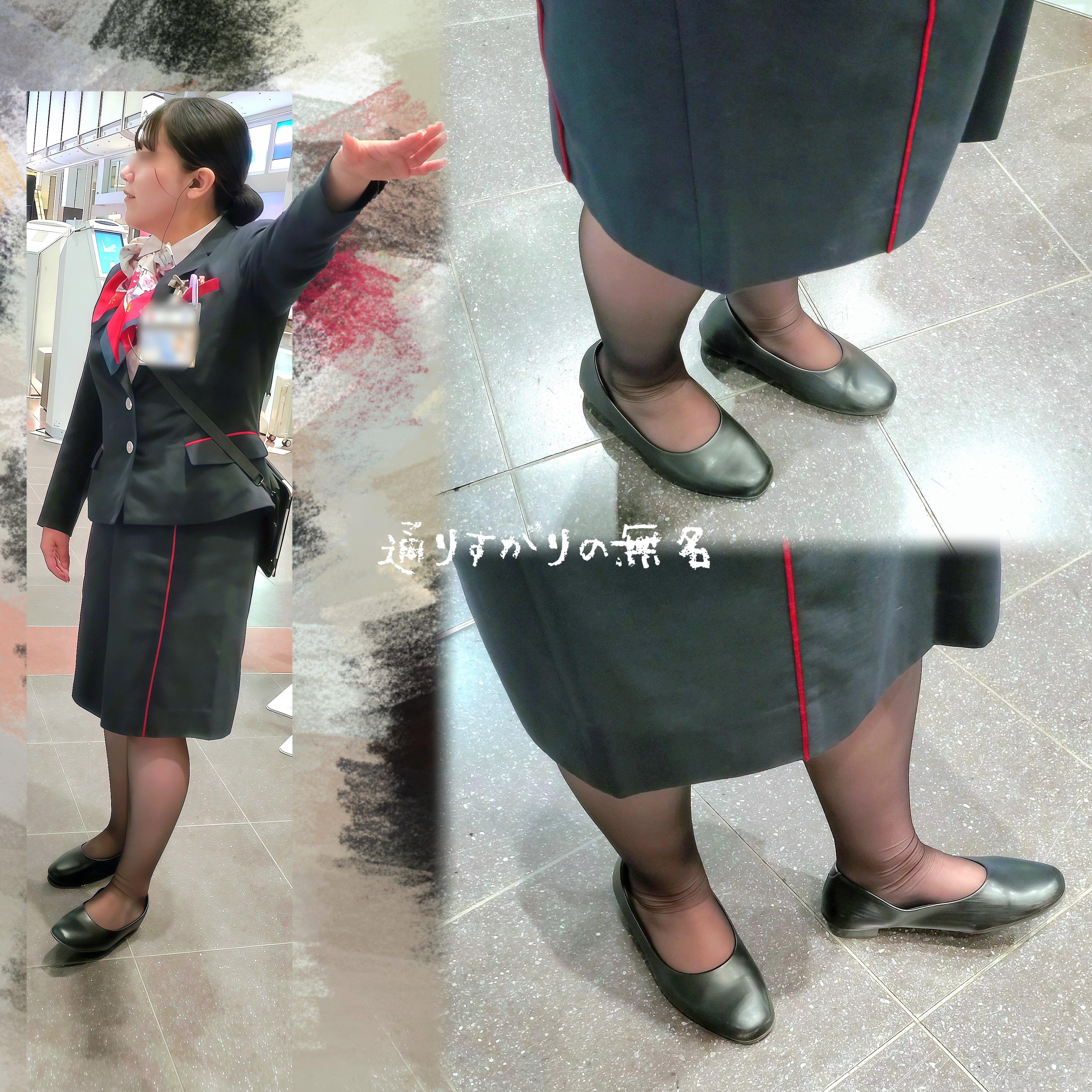 黒ストにパンプス、恐らく歩き回り長時間立ち仕事だからパンプスもすぐダメになりそうですね、是非とも廃棄の際には欲しい物です