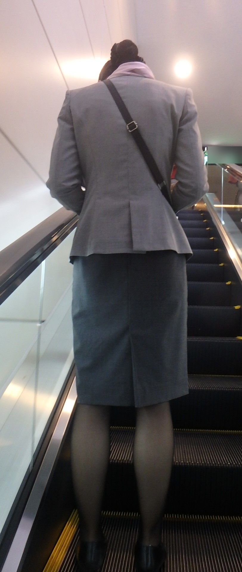 連貼りすいません。パンツスーツが増える中、やはりタイトスカートのリクスーOLさんのストッキング脚は最高です。