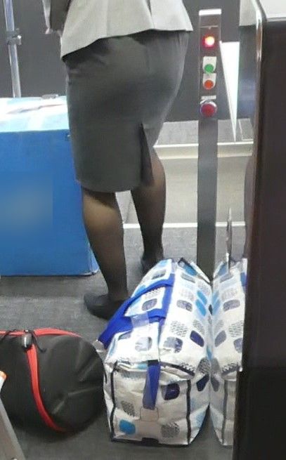 最近少なくなったタイトスカートのスーツ姿の展示員さん、休憩中にパンプスを完全に脱いでストッキング足全開、見入っちゃいました。スーツ姿のOLさんなので、ここにも一部載せさせて下さい。