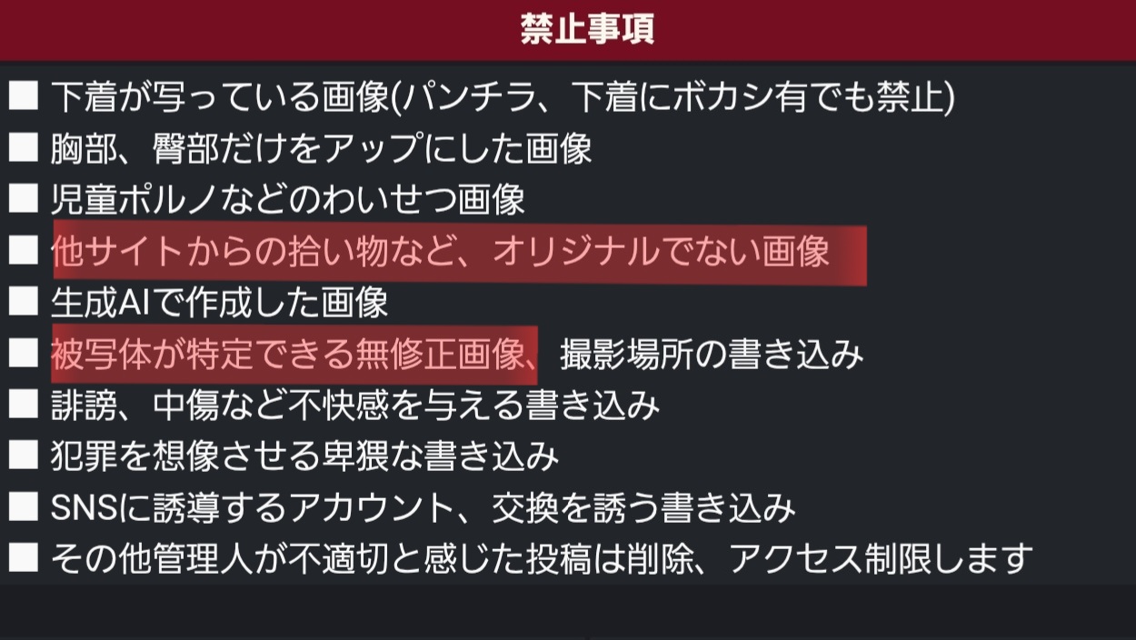 ■ 下着が写っている画像(パンチラ、下着にボカシ有でも禁止)