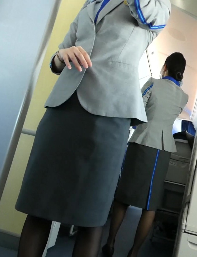 さすが野伏さんの撮影力です。指輪をつけているCAは、旦那専用ですね。一日乗務して何百人、何千人から視姦されたその黒パンスト脚は、夜には性玩具として旦那の性欲処理に使われてるんですね