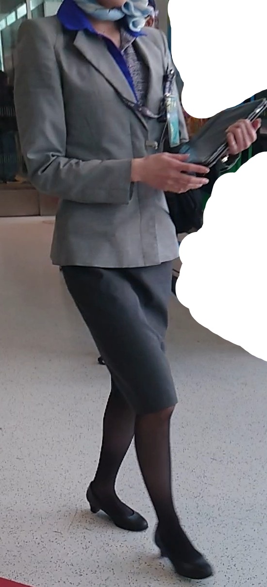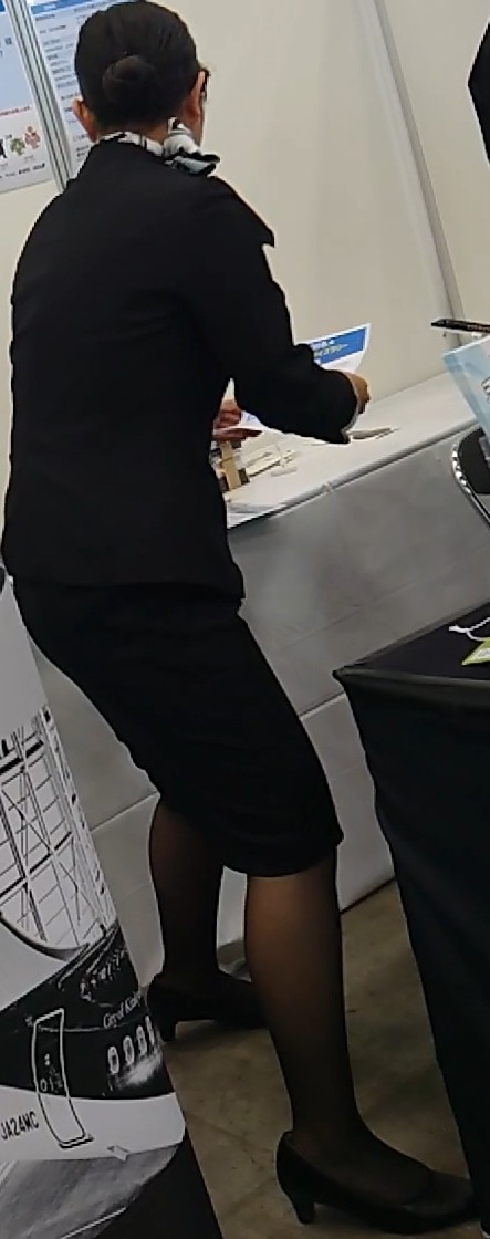 冬季は黒タイツが基本の自社専属バスガイドさん(黒ストッキングは見た事がない)。派遣バスガイドさんは、自由みたい。