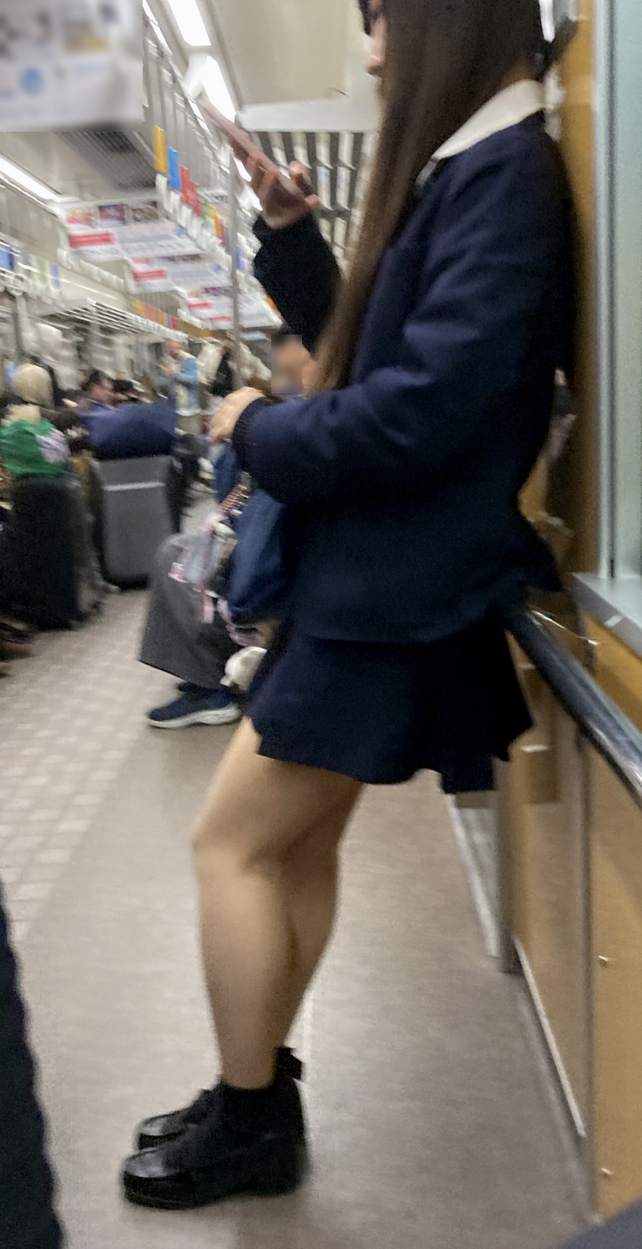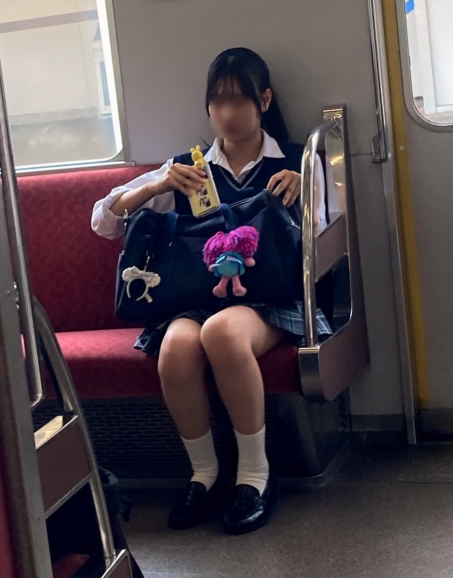 電車の中で目の前にこんなJKがいたら…撮りたくなり