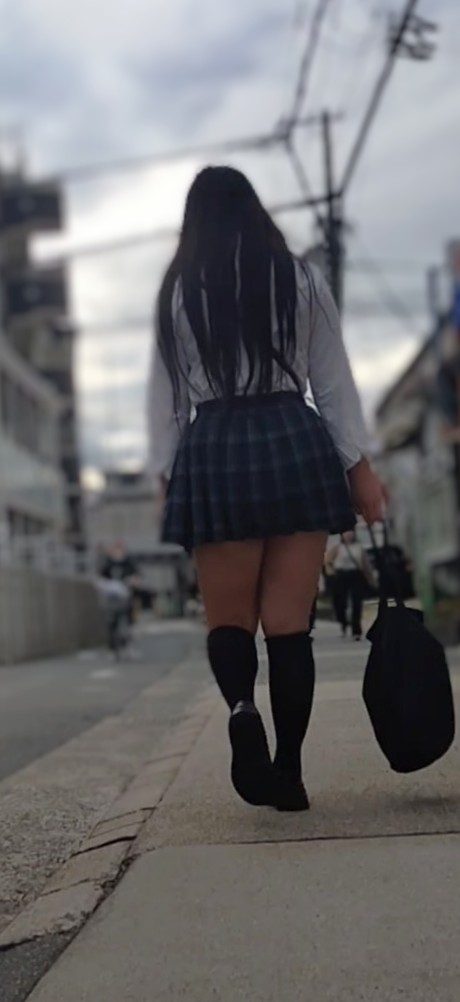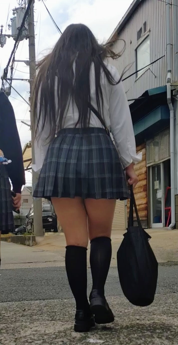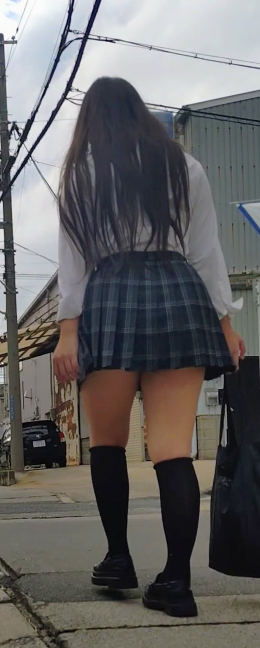 ボリュームのあるお尻に超ミニスカ ヒラヒラする裾を押さえることなく、後を気にすることなく下校する、ありがたいJKちゃんです。 駅の階段までついて行きたかったのですがこの日は◯察を目撃したので途中までです。