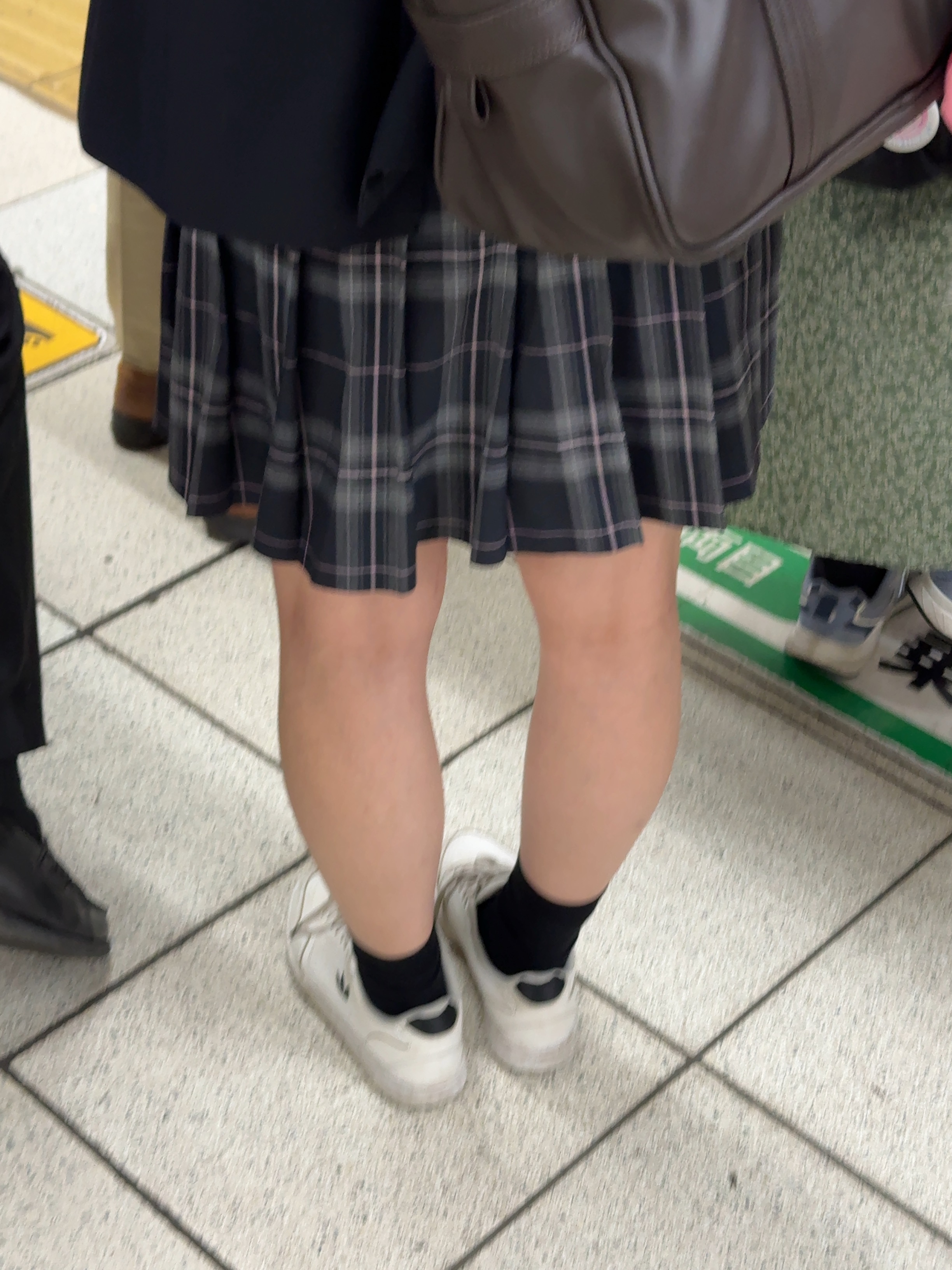 下りエスカに乗ろうとしている生脚の子は