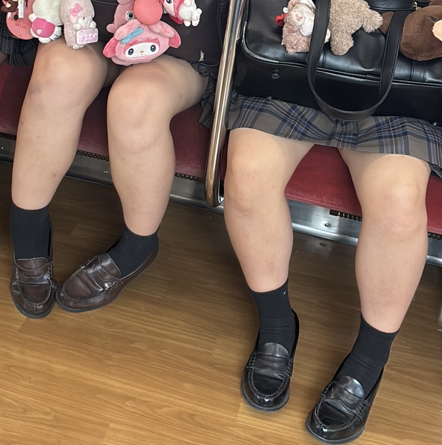 右の子がピッタリと両足を揃えてるのがクッソエロス!左の子も両足を揃えたら膝がくっつきそうでいい脚してそうですね!