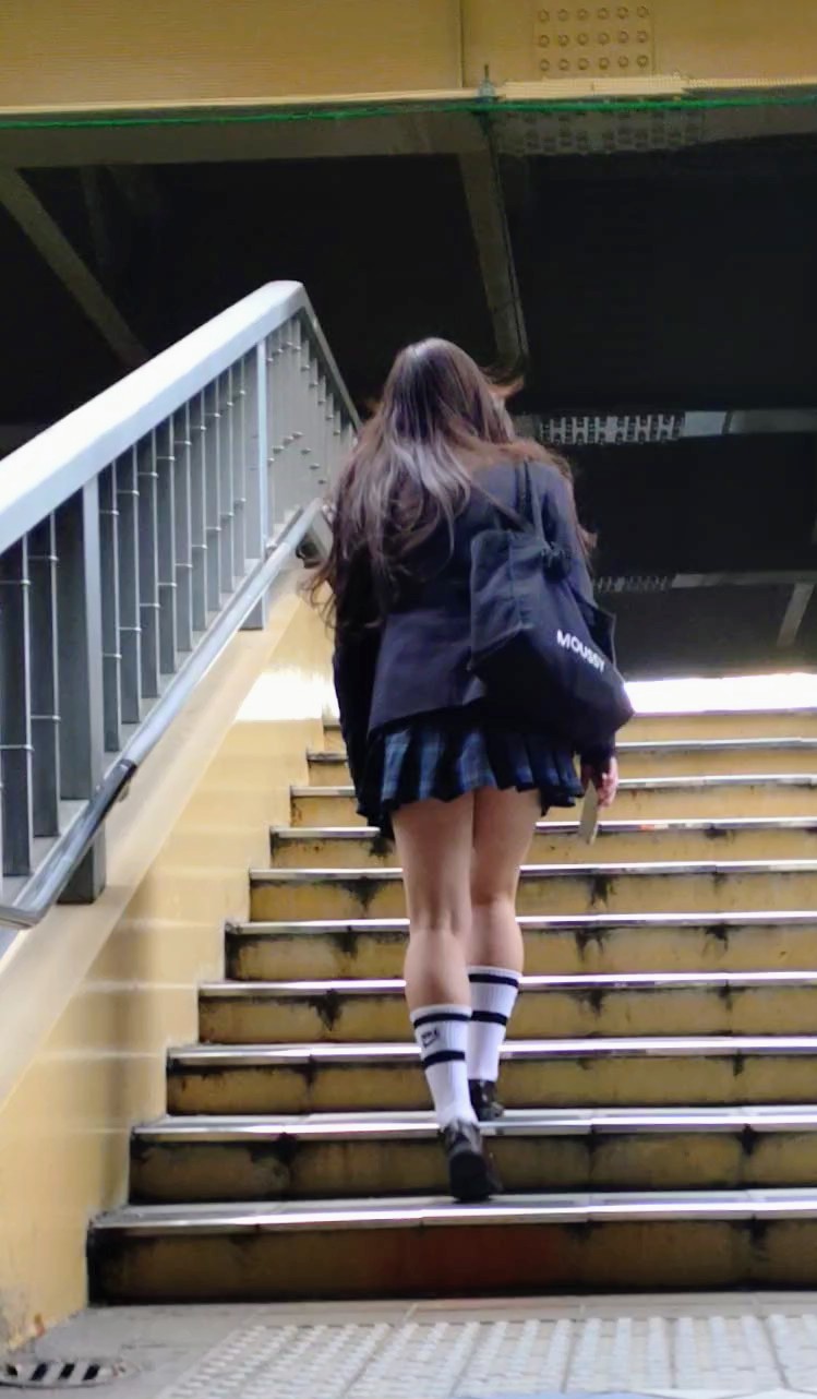 階段、3人横並びは中々ないですよ。後から近付くと大体、1列になってしまいます。