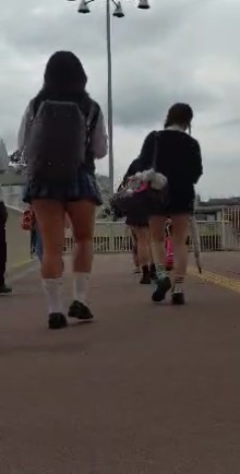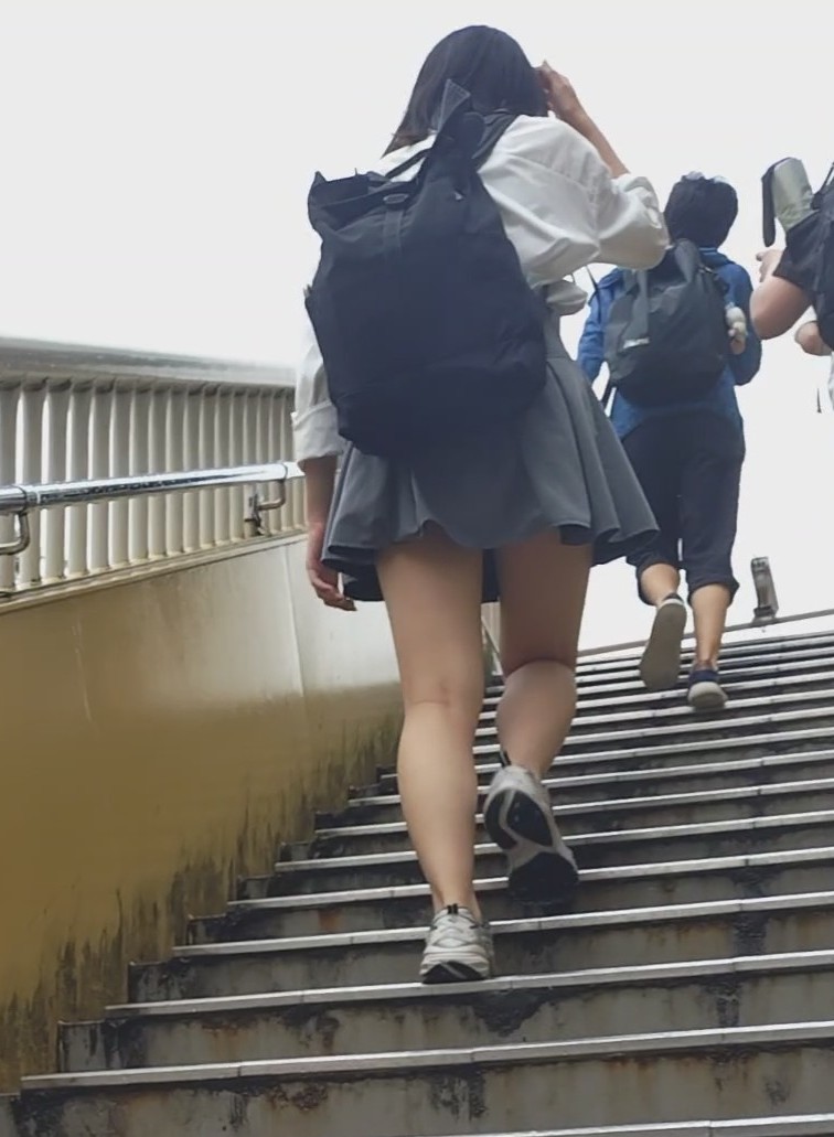 筋肉美脚JKちゃんパート3になってしまいました。少し痩せたような、美脚が増しています。やはり脚の露出は大事ですね。階段や風が吹いてもスカートを押さえることなく歩いて行きます。階段を上がるところを後からコッソリと。駅に向かう歩道橋を後から、前を歩くJKちゃんも撮りたかったんですが…本日もやはり生パンです。