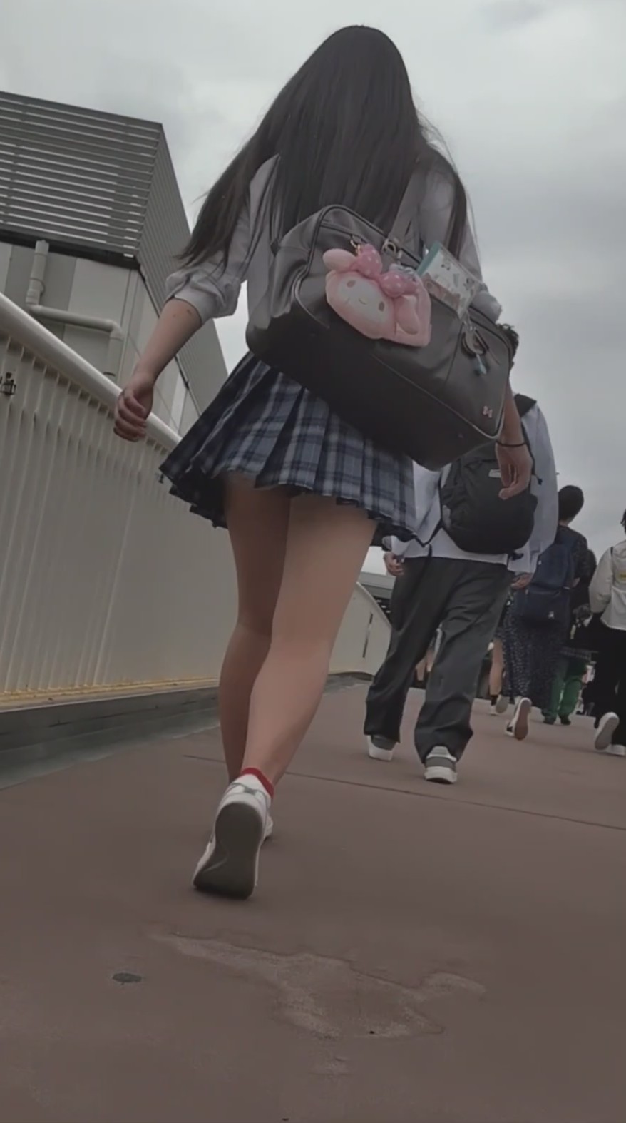 筋肉美脚JKちゃんのパート4になります。ちょっと飽きられそうですが、前回は階段を上がるシーンと歩道橋を歩くシーン、今回は発見直後と終了間際です。発見直後は少し遠目になるため加工しました、お尻に手を当てるシーンがお気に入りです。 最後まで振り返ることなくお別れできたので、ホッとしました。
