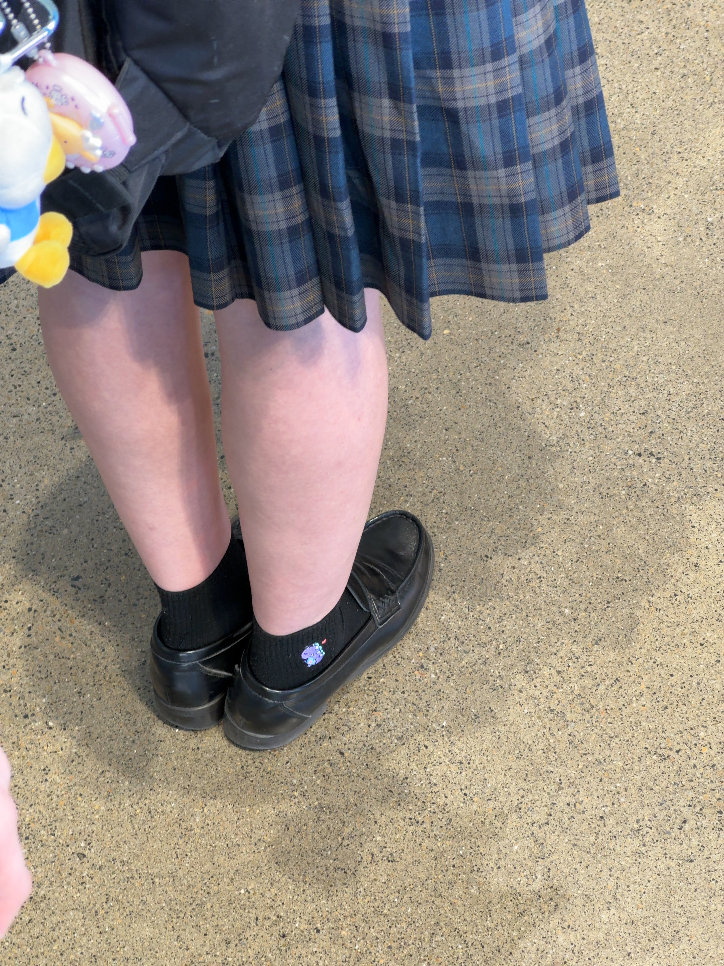 前の女性が足を崩している中で、この子はしっかりと揃えてクッソエロス!